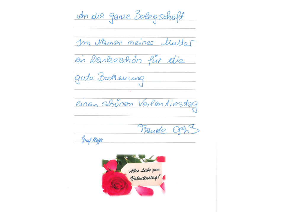 Anlässlich des kommenden Valentinstages hat das SeneCura Sozialzentrum St. Margarethen an der Raab eine herzliche Valentinstagsaktion gestartet. Die Anwesenden des Hauses wurden ermutigt, ihre Wertschätzung sowie Dankbarkeit auf kleinen Kärtchen auszudrücken. Von liebevollen Botschaften an die Familie und Freunde bis hin zu rührenden Dankesworten an die engagierten Mitarbeiter:innen des Hauses, die tagtäglich ihr Bestes geben, um den Alltag der Bewohner:innen zu versüßen, war alles dabei. Auch das Haus hat eine herzliche Nachricht von der Bewohnerin Graf Stefanie erhalten, welche das ganze Team sehr berührt hat. Diese tolle Dankesaktion zeigt, dass Liebe und Wertschätzung immer gewinnt.
