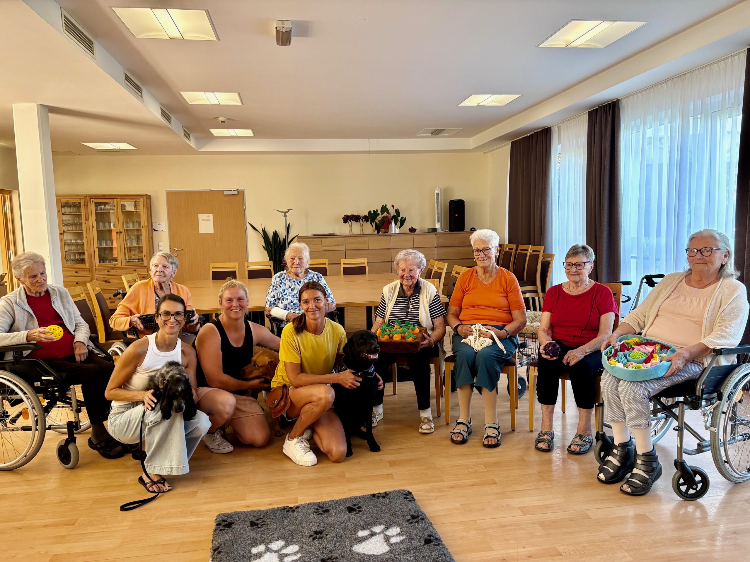 Der beste Freund des Menschen ist bekanntlich der Hund – deshalb bekamen die Bewohnerinnen und Bewohner des SeneCura Sozialzentrums St. Veit in der Südsteiermark letztens besonderen Besuch von der Hundeschule Vogau. Der flauschige Vierbeiner sorgte für rege Begeisterung und die Bewohner:innen warteten schon gespannt mit Leckerli, kleinen Spielzeugen und freuten sich riesig über den Besuch der Fellnase.
