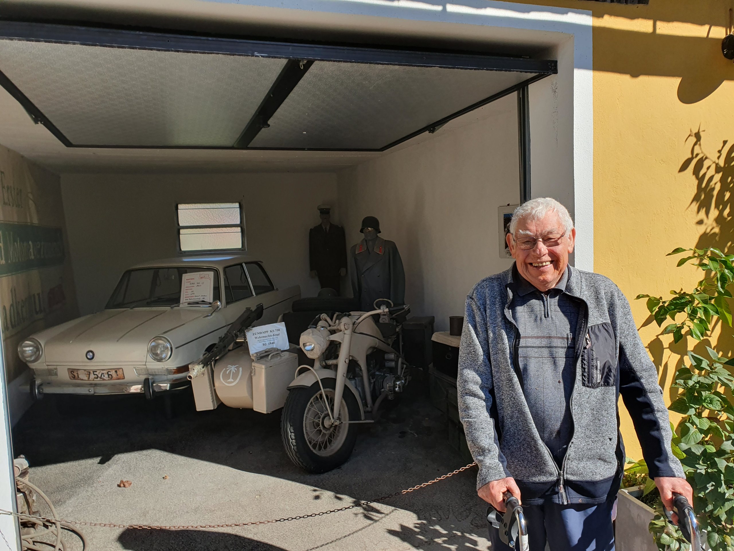 Herr Ofner freute sich sehr über den tollen Tag bei der Oldtimer-Ausstellung bei Pechmann’s alter Ölmühle in Deutsch Goritz