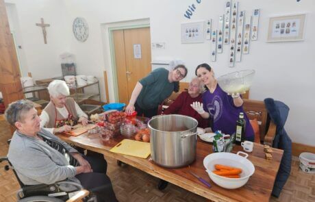 Das SeneCura Pflegezentrum St. Veit an der Glan ist mit den Mitarbeiter:innen aus über 12 verschiedenen Nationen wahrlich multikulturell. Um diese Diversität zu nutzen, beschloss das Pflegezentrum monatlich einen Tag dem Heimatland der verschiedenen Mitarbeiter:innen zu widmen. Nach dem „Abflug in Österreich“ im Januar, hieß es jetzt Ende Februar „Benvenuti in Italia“. Diesen Monat widmeten sich die Bewohner:innen sowie das Team den Mitarbeiter:innen Claudia, Andrea und Armando aus Italien. Unter deren Anleitung bereiteten alle in den letzten zwei Tagen köstliche italienische Spezialitäten vor. Gemeinsam mit Bewohner:innen, Mitarbeiter:innen, Hausleitung, ehrenamtlichen und pensionierten Mitarbeiter:innen wurde mit italienischer Musik und Deko, dem Duft von Lasagne, verschiedensten Pizzen, Minestrone, italienischem sommerlichen Salat, Spaghetti Bolognese, Tiramisu und salame di cioccolato für einen Tag Italien ins Haus geholt.