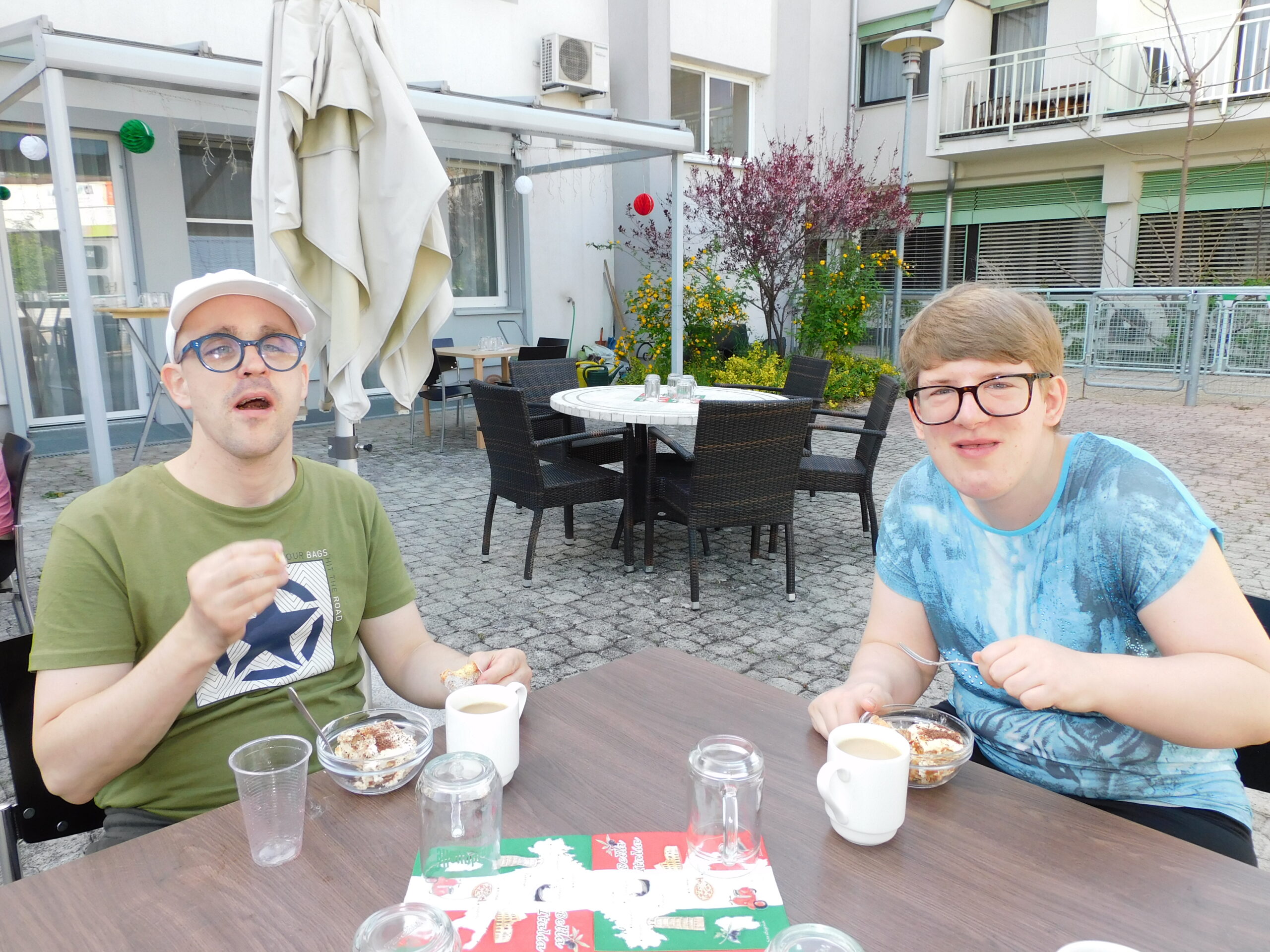 Marina Drexler und Dominic Bauer genießen das selbstgemachte Tiramisu.