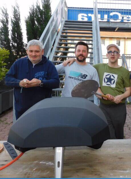 Erich Fuhrmann und Dominic Bauer unterstützen HL Franz Kiss beim Zubereiten der Pizza
