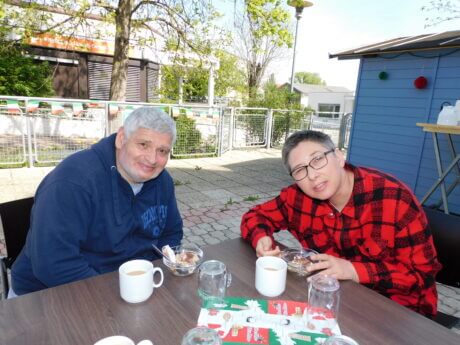 Erich Fuhrmann und Daniela Honc freuen sich über das selbstgemachte Tiramisu.