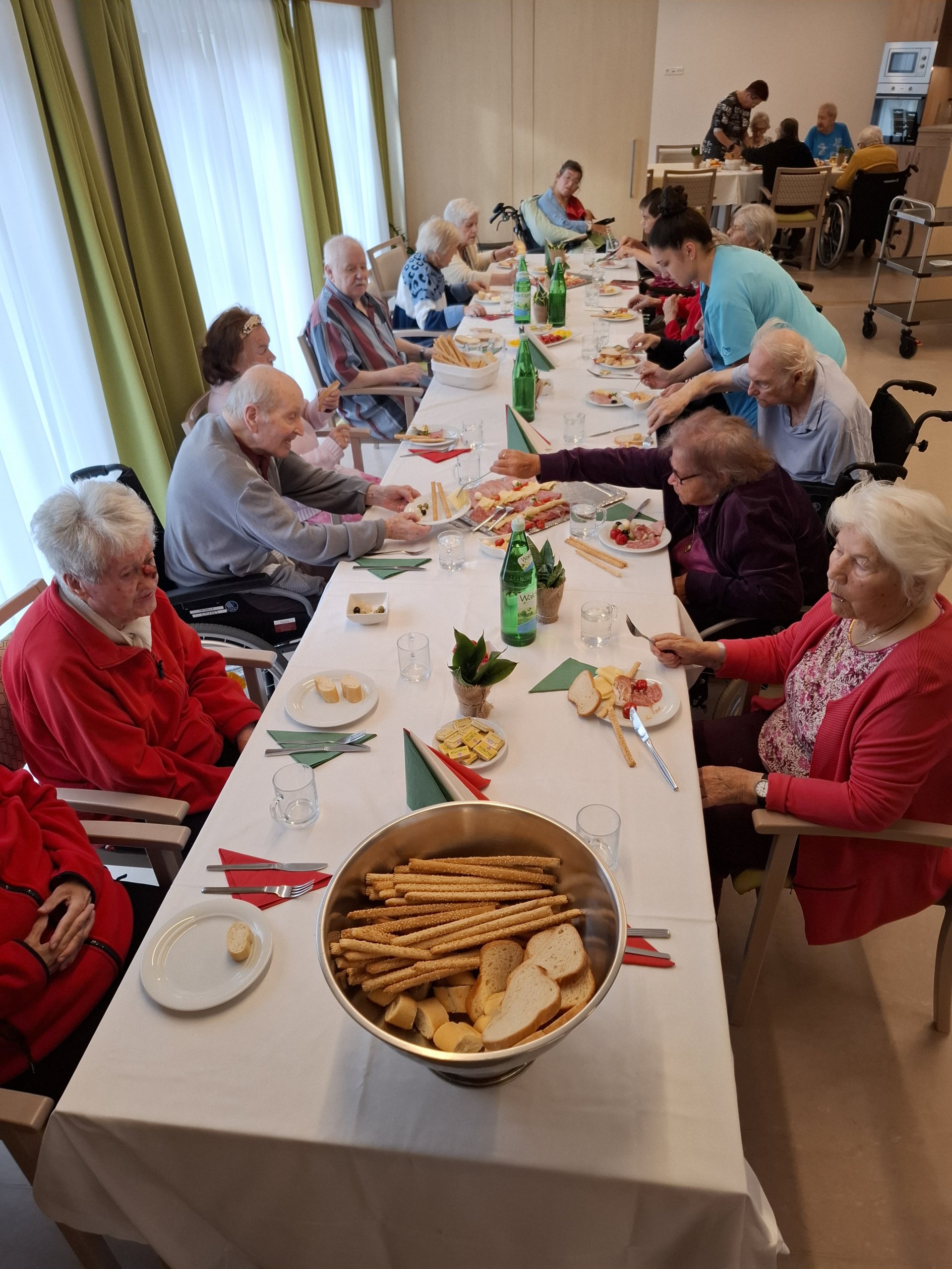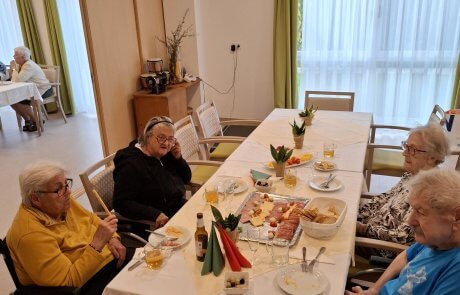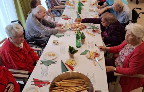 Kürzlich fand unter dem Motto „Italienischer Genuss“ ein schöner Nachmittag im SeneCura Pflegezentrum Villach statt. Im Zuge dieses Nachmittags wurden auch die Herzenswünsche von den Bewohner:innen Fr.Cerncic, Fr. Plankensteiner und Hrn. Kühberger erfüllt. Die Bewohner:innen erfreuten sich am Genuss italienischer Spezialitäten, u.a. leckeren Wurst- und Käsevariationen sowie köstlichem Brot und Aufstrichen. Bei stimmungsvollem Ambiente und italienischer Musik ließ sich die Feinschmecker-Runde die kulinarischen Köstlichkeiten schmecken und Erinnerungen an Italien-Urlaube aufleben.