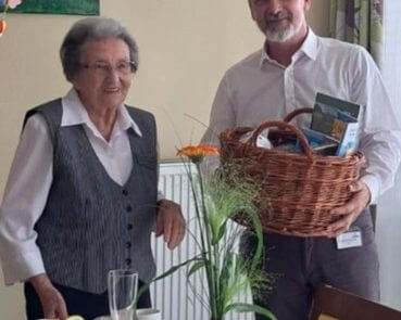 Die Freude über das stolze Jubiläum war im ganzen Haus spürbar. Rosa Gruber selbst genoss die Feierlichkeiten in vollen Zügen und zeigte sich sichtlich gerührt: „Ich freue mich sehr, dass meine liebsten Menschen zusammengekommen sind, um mit mir zu feiern. Es war ein wunderschöner Tag und ich bin sehr dankbar für all die Glückwünsche und die schöne gemeinsame Zeit.“ Im kleinen Kreis wurde gemeinsam mit der Tochter von Rosa Gruber und ihrem Schwiegersohn angestoßen. Neben einem festlich überreichten Geschenkkorb durfte sich die Jubilarin auch über zahlreiche persönliche Worte und liebevolle Gesten freuen. Einer der Gratulanten war Johann Holzer, selbst 102 Jahre alt und ebenso Bewohner des Hauses. Das Bild der beiden Senior:innen sorgte bei den Gästen für ein Lächeln und wurde zum Symbol für die besondere Lebensfreude im SeneCura Sozialzentrum Unterpremstätten.