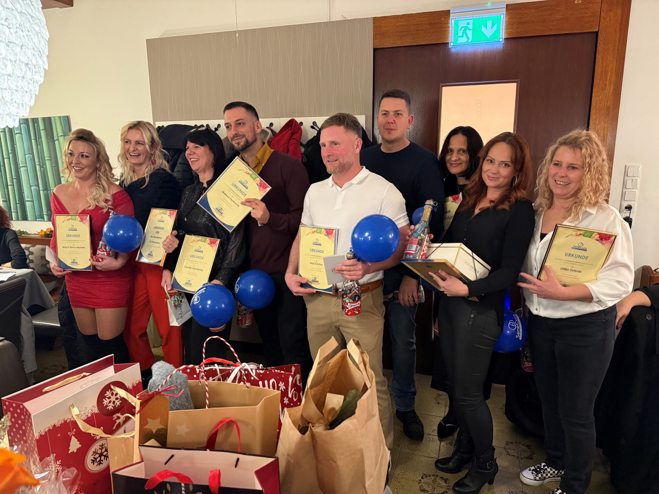 Das SeneCura Sozialzentrum Wildon ist sehr stolz auf ihre Mitarbeiter:innen und schätzt es sehr, dass sie ein sehr stabiles Team haben. Natürlich werden traditionell bei der Weihnachtsfeier die „Jubilare“ gekürt – dieses Jahr waren es acht Jubilare mit insgesamt 75 Dienstjahren. Außerdem gab es dieses Jahr erstmalig Sonderjubilare. Zum einen wurde die Mitarbeiterin Medeja zur Massage-Queen gekürt, welche zusätzlich zu ihrer Ausbildung zur Pflegeassistentin auch eine Massageausbildung abschloss. Sie verwöhnt die Mitarbeiter:innen und Bewohner:innen immer wieder in ihrer Freizeit mit wohltuenden Massagen. Die Verwaltungsassistentin Claudia wurde unter anderem zur Clarity-Queen gekürt. Sie hat das Team mit viel Geduld und großem Einsatz erfolgreich durchs neue System navigiert.