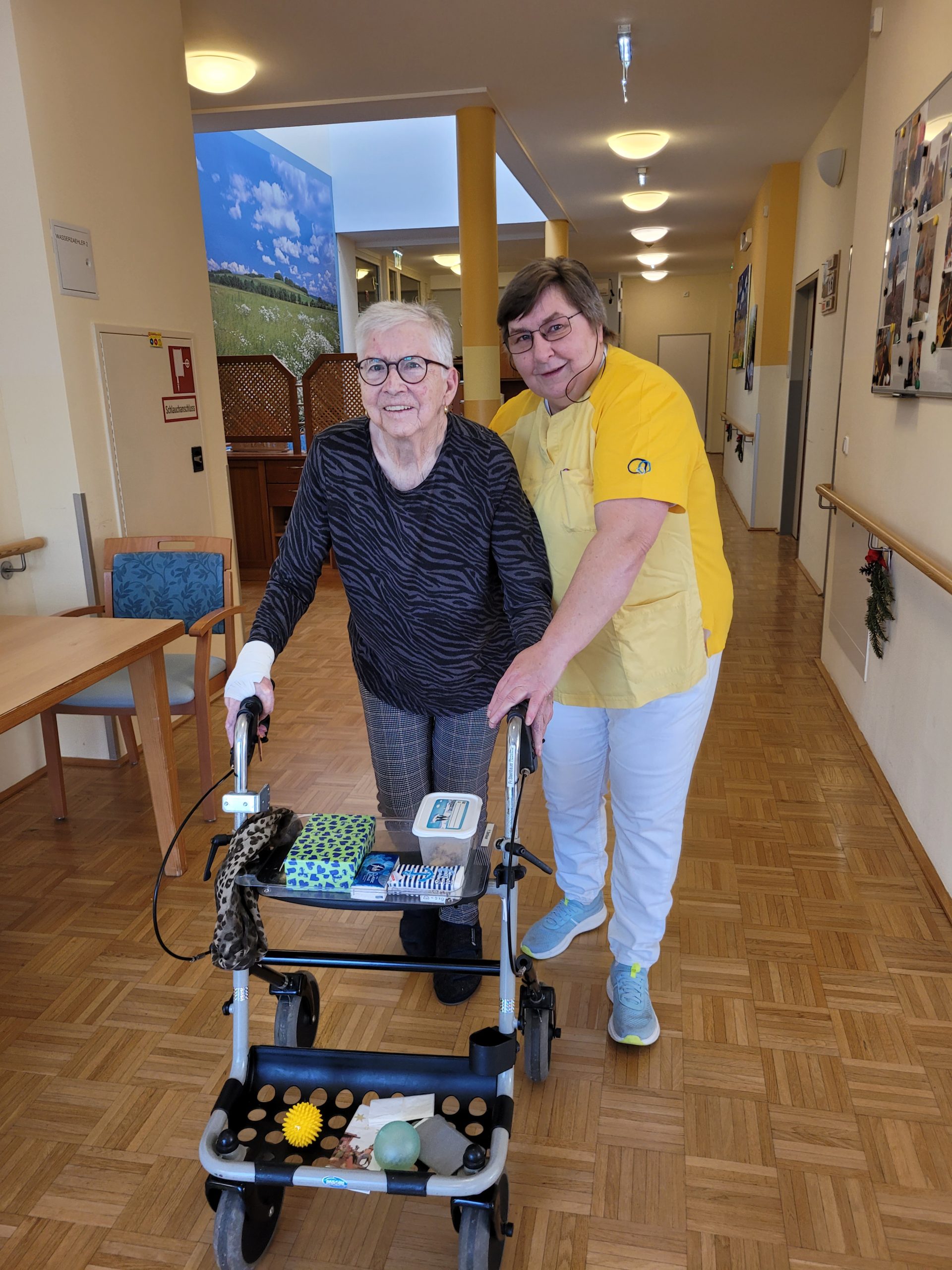 In ihrer täglichen Arbeit widmet sich Waltraud Pschaider mit viel Herzblut den Bewohner:innen des Sozialzentrums. Ihr Tätigkeitsfeld reicht von der Körperpflege und Mobilisation über die Förderung der Selbstständigkeit bis hin zur Unterstützung im Alltag. „Mir ist es wichtig, dass unsere Bewohner:innen ihre Lebensqualität so weit als möglich behalten und sich bei uns wohlfühlen.“