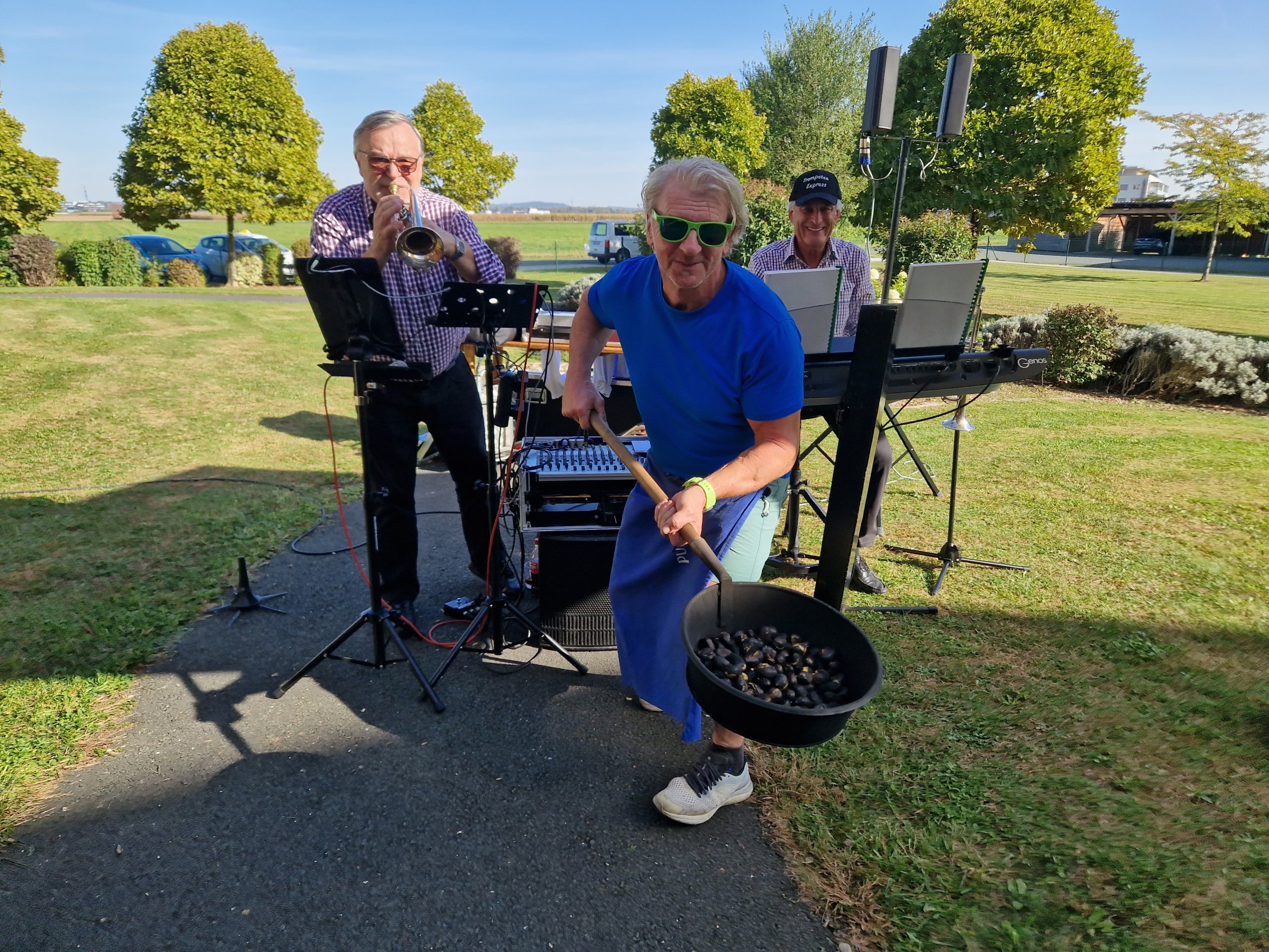 Der Herbst mit seinen Gaben erfreute das SeneCura Sozialzentrum Unterpremstätten mit Kastanien und Sturm. Bunt gefärbte Blätter und etwas Nebel – so zeigte sich der Herbst von seiner gewohnten Seite. Voller Vorfreude auf die ersten Kastanien in diesem Jahr gesellten sich viele Bewohner:innen in den Garten, um bei besten Herbstwetter beim Kastanienbraten mit Fitnesstrainer Gerhard Wippel live dabei zu sein. Einige Seniorinnen und Senioren, die lieber im Haus blieben, bekamen dort Kastanien und Sturm serviert. Musikalisch wurde das Kastanienfest mit flotter Musik und bekannten Liedern vom Trompetenexpress umrahmt. „Ein rundum gelungenes Fest.“, freute sich Hausleitung Harald Steiner.
