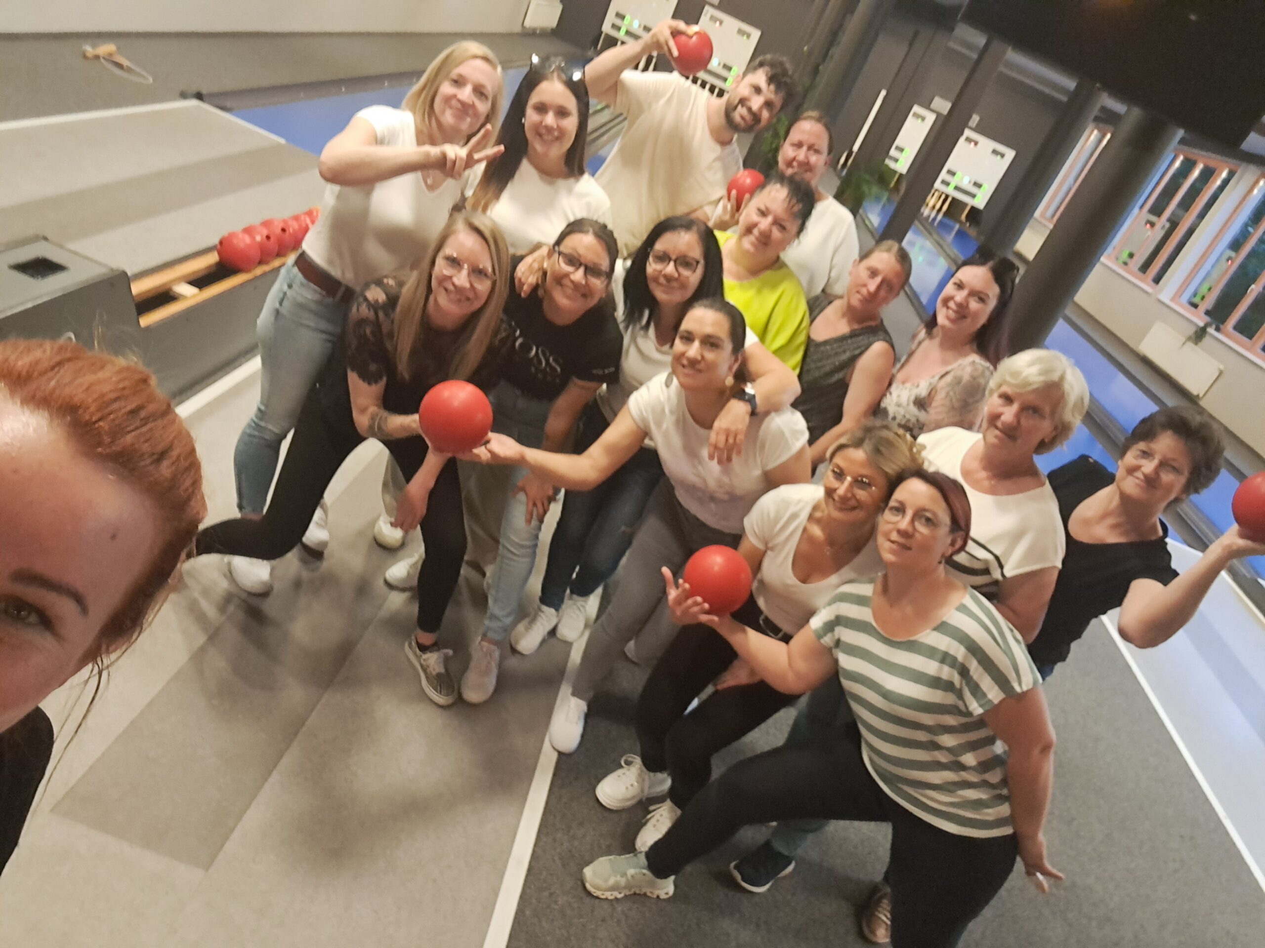 Die Mitarbeiter:innen beim Kegelabend.