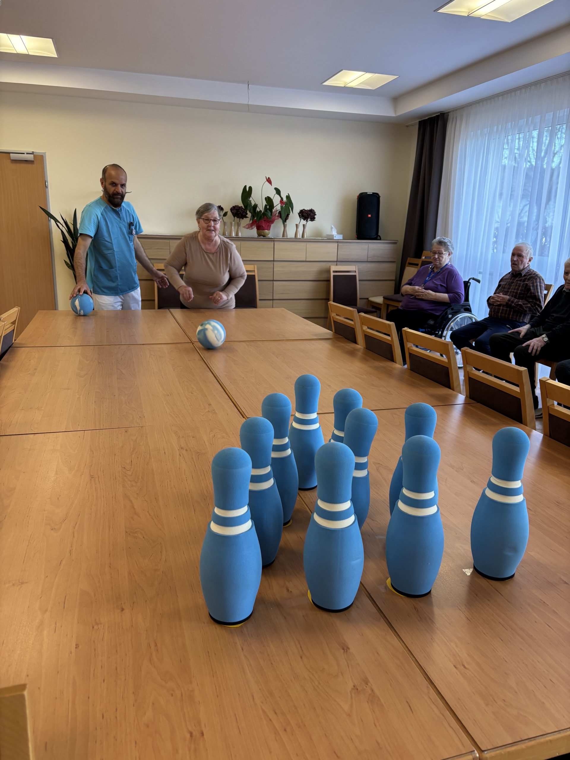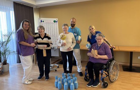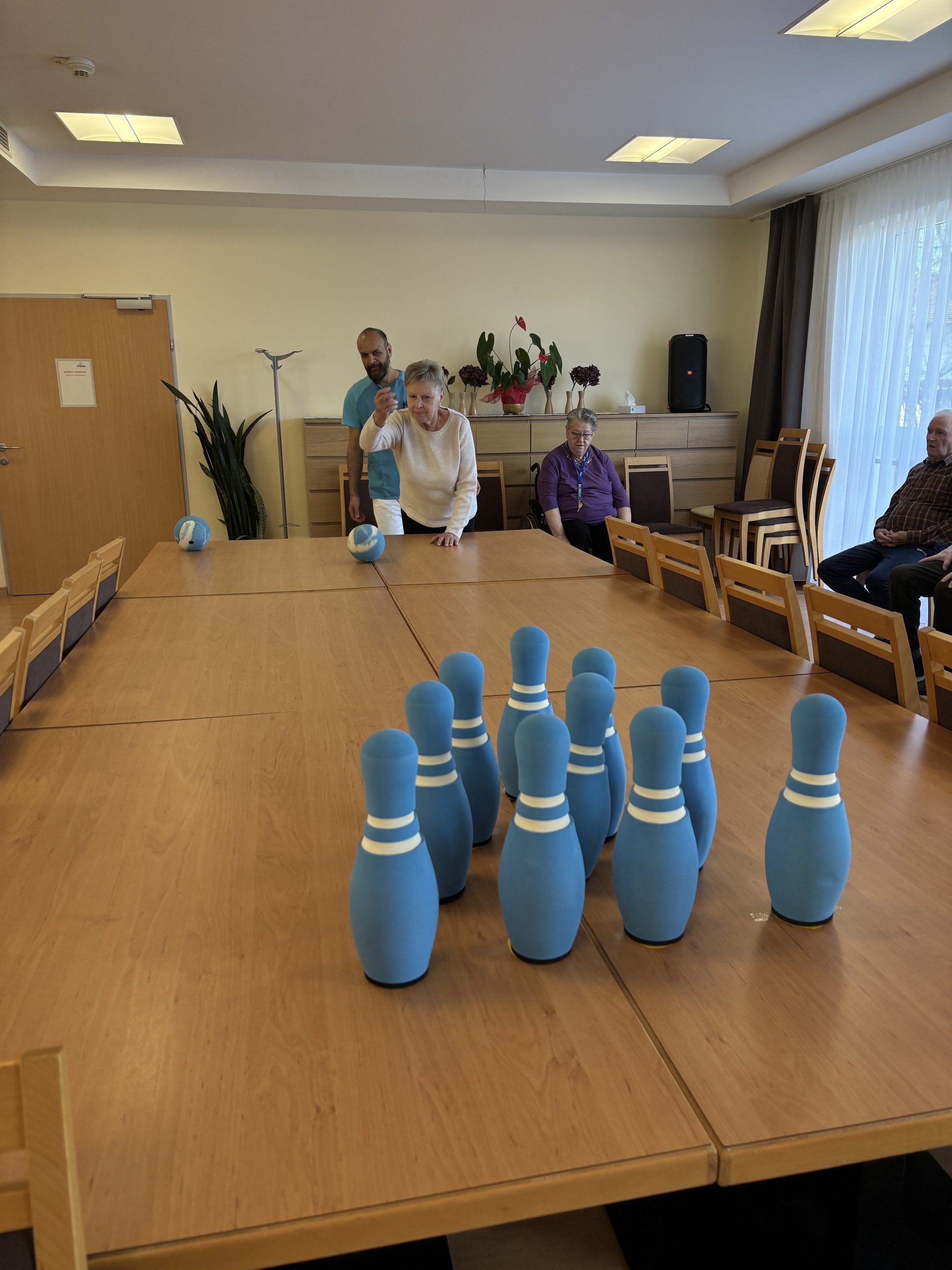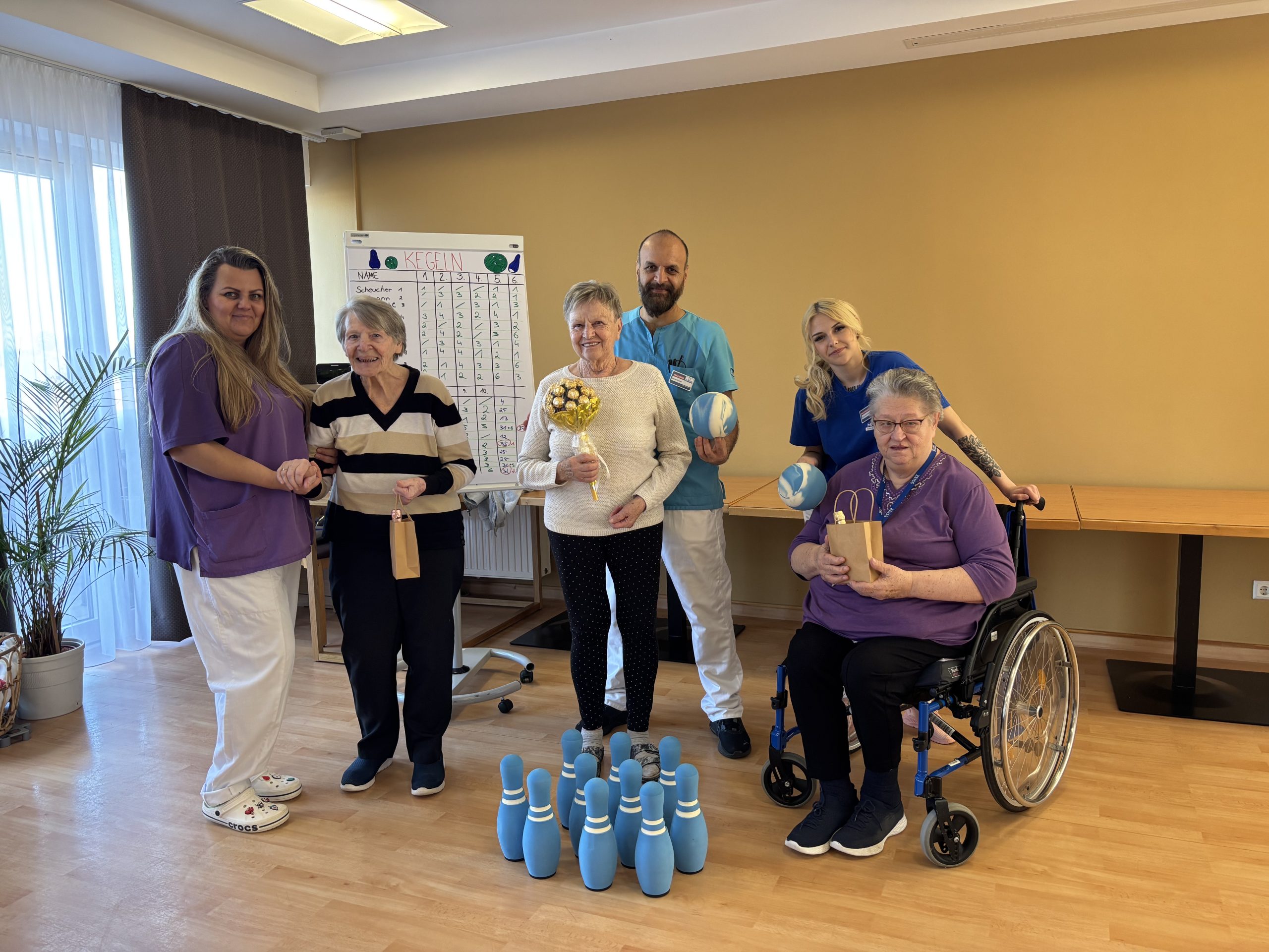 Im SeneCura Sozialzentrum St. Veit in der Südsteiermark wurde kürzlich eine kreative Kegelrunde veranstaltet. Die Mitarbeiter:innen schoben kurzerhand ein paar Tische zusammen und verwandelten sie in eine erhöhte Kegelbahn. Mit viel Engagement und guter Laune traten die Bewohner:innen gegeneinander an und freuten sich über jeden Treffer. Der Spaß stand dabei klar im Mittelpunkt – eine kleine Siegerehrung durfte jedoch nicht fehlen!
