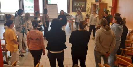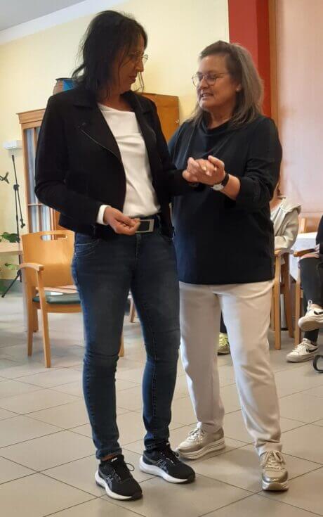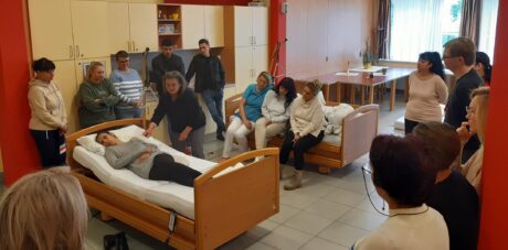 Die Kinästhetik – Trainerin, Miriam G. Fink, hat die Mitarbeiter:innen der Pflege jeweils in zwei vierstündlichen Workshops mit diesem Thema vertraut gemacht. Es wurde auch praktisch die Ergonomie, Berührungskontakt- und Körperarbeit geschult.
