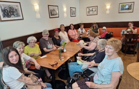 Einige Bewohner:innen des SeneCura Sozialzentrums Stainz marschierten kürzlich zwei Runden durch den örtlichen Kirtag am Hauptplatz in Stainz. Gemeinsam wurden Mantelschützen begutachtet, Lebkuchenherzen gekauft und tolle Schuhe sowie Handtaschen erworben. Das Highlight des Kirtagbesuchs ist wie immer die Vorarlberger Käseverkostung. Für das leibliche Wohl wurde anschließend im Kaufhaus Hubmann gesorgt, wo die Damen und Herren noch lange über den Kirtag plaudern. Es ist immer ein lustiges Erlebnis, dort Bekannte aus früheren Zeiten anzutreffen.