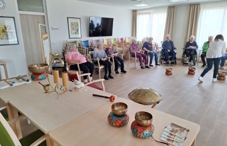 „Entspannt in den Vormittag mit Klangschale“ hieß es am Mittwoch, den 16.04.2025 im SeneCura Pflegezentrum Vassach. Bewohner:innen und Angehörige genossen die Klangschalenreise mit Gabriele Schumi.
