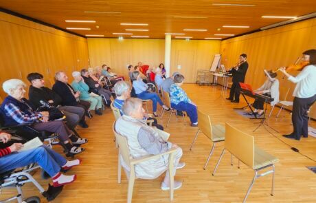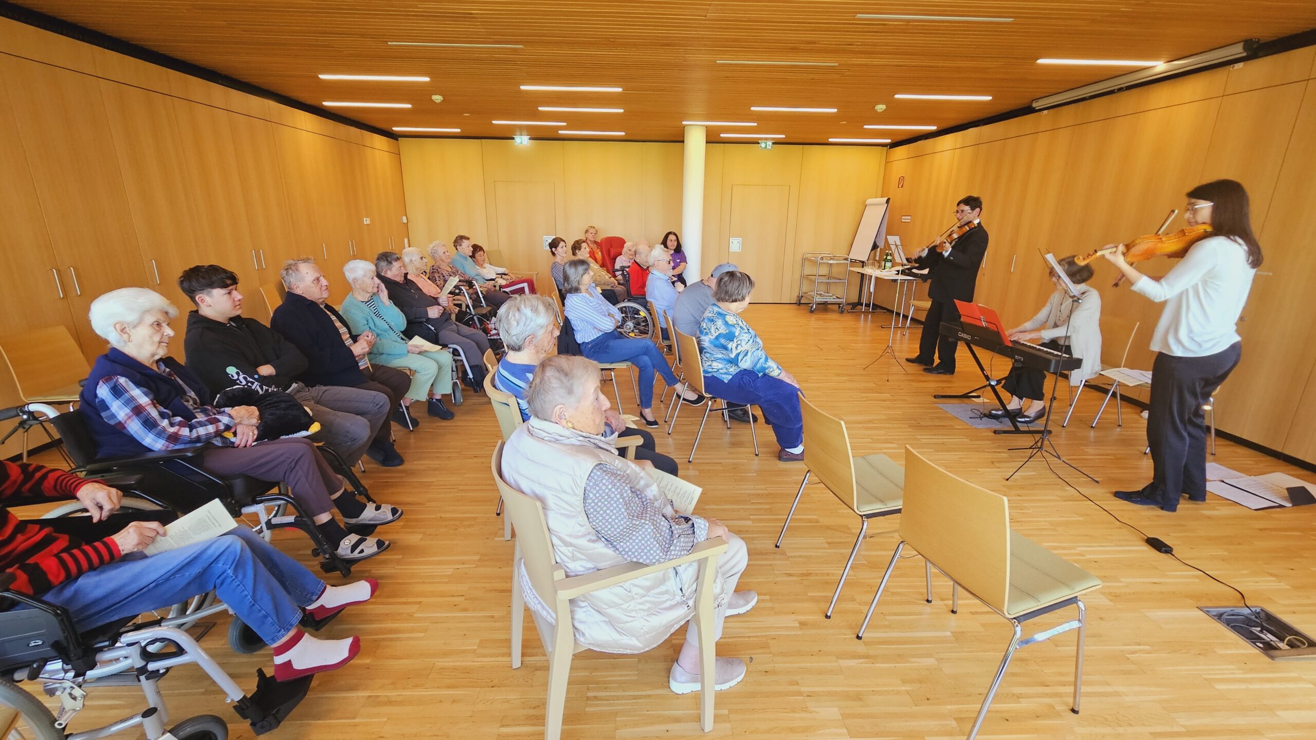 Für stimmungsvolle Musik im SeneCura Sozialzentrum Hard – Haus In Der Wirke sorgte kürzlich wieder ein klassisches Konzert. Andreas Ticozzi (Viola), Edeltraud Burtscher (Klavier) und Jelena Nerdinger (Violine) zogen die Bewohner:innen schnell in ihren musikalischen Bann und sorgten für berührende Herzen und einiges an Staunen. Die harmonischen Klänge der Violine und der Viola in Kombination mit dem Klavier stellten sich wahrlich als Balsam für die Ohren heraus. Die Bewohner:innen genießen die klassischen Melodien immer wieder in vollen Zügen und freuen sich bereits auf das nächste Mal. Mit einem lauten Applaus drückten die Seniorinnen und Senioren ihre Dankbarkeit gegenüber dem Musik-Trio aus.