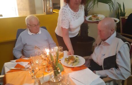 Alle Jahre wieder im März, auch heuer fand im SeneCura Sozialzentrum Stainz ein besonderer Abend statt – das „Candle Light Dinner“. Ein besonders edler Rahmen, der unseren Angehörigen mit ihren lieben Bewohner:innen geboten wird, einige schöne gemeinsame Stunden zu verbringen. Heuer wurden die Farben orange und weiß gewählt und auch die Dekoration des Raumes wurde auf dieses Ereignis hin abgestimmt. Elegante weiße Tulpen mit orangen Ginster verzierten die Tische und die orangen Stabkerzen verströmten ein warmes Licht, wodurch eine stimmungsvolle Atmosphäre entstand. Gemeinsam halfen das EA- und SeneCura-Team zusammen, um diesen schönen Rahmen so stimmungsvoll wie möglich zu gestalten. Nach der herzlichen Begrüßung durch die Hausleitung Kathrin Hopfer und Pflegedienstleitung Isabella Antensteiner wurde der Abend eingeläutet.
