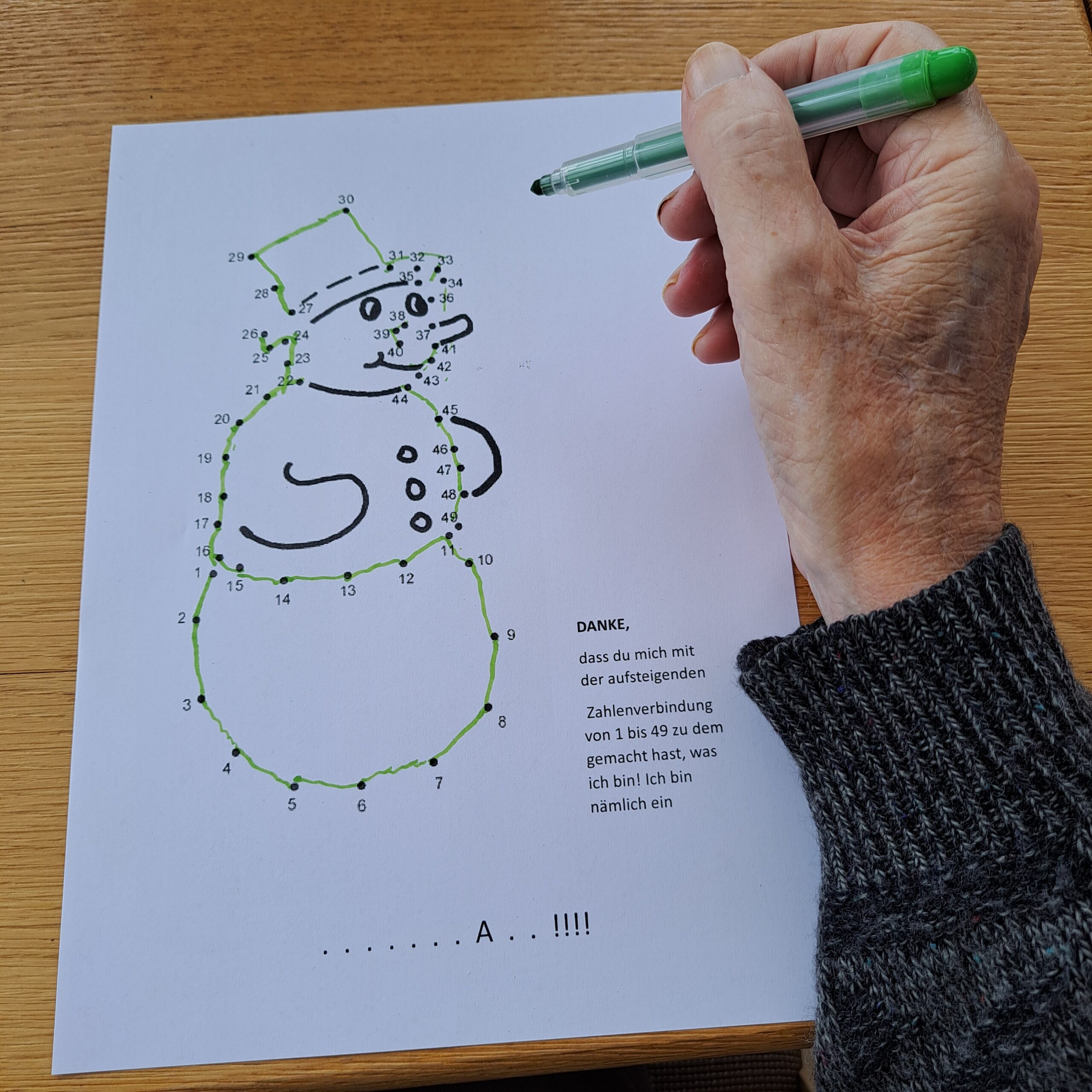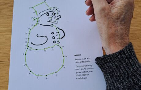 Der internationale „Tag des Schneemannes“ am 18. Jänner wurde im SeneCura Sozialzentrum Altenmarkt auf kreative Weise umgesetzt. Zu Beginn durften die Bewohner:innen ein interessantes Schneemannrätsel lösen, indem Punkte neben den Zahlen in aufsteigender Reihenfolge verbunden wurden und sich das gesuchte Lösungswort auf diese Weise bildlich ergeben hat. Verschiedenste Rätsel zu lösen, zählt im Animationsprogramm zum laufenden Tagesangebot, denn die Bewohner:innen möchten ihre Hirnmuskel unbedingt gut und ausdauernd trainieren. Nachdem jede:r prompt das richtige Lösungswort gefunden hatte, wurden Schneemänner aus WC-Papierrollen gebastelt. Die Freude am gemeinsamen Gestalten war groß und die sehr gut gelungenen Ergebnisse zieren nun die Zimmer oder tatsächlich manche Toilette der Senior:innen im Haus. Gemeinsames Basteln ist immer wieder eine tolle Gelegenheit, um miteinander Zeit zu verbringen, zu lachen und dann auch noch fertiges Endprodukte mitzunehmen.