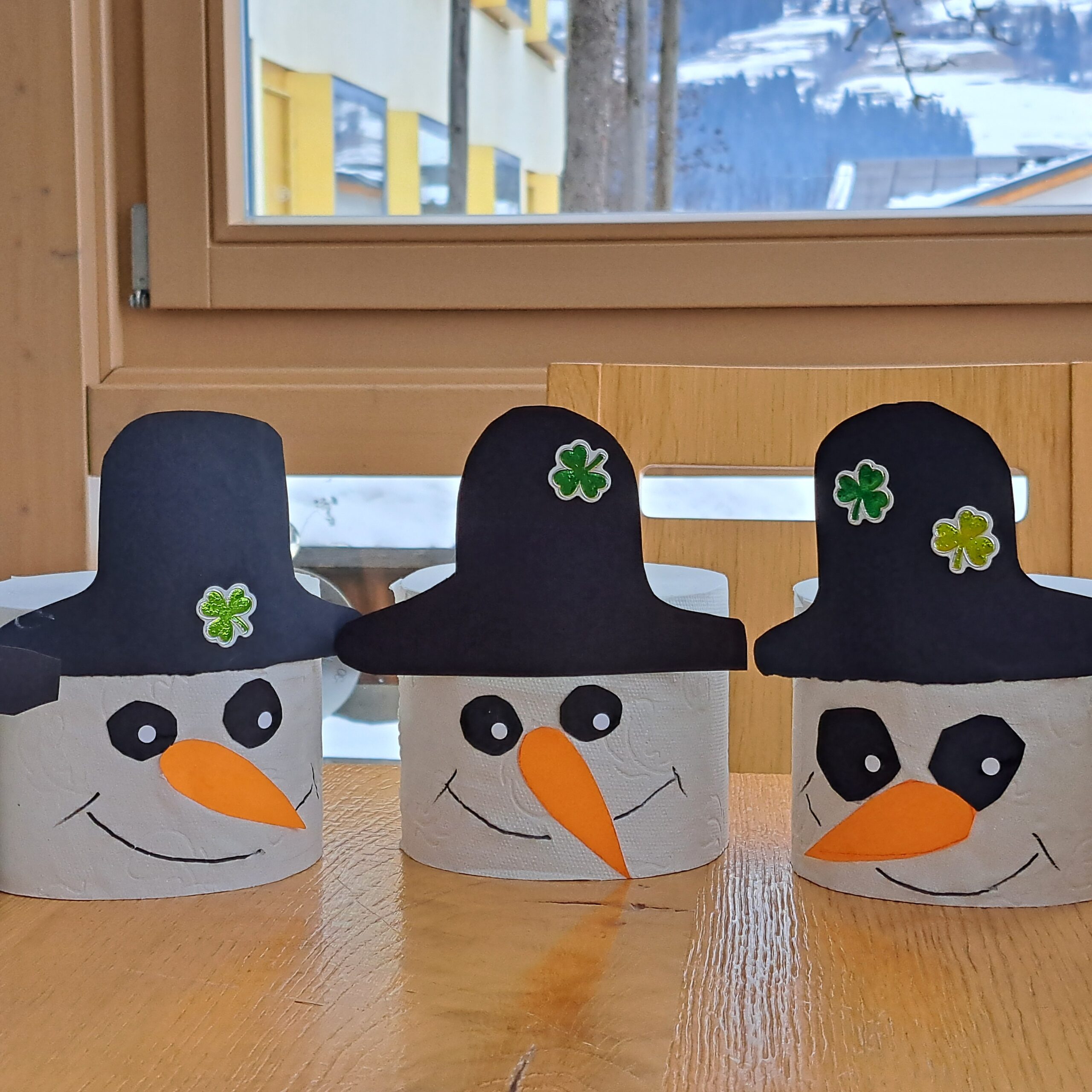 Gemeinsam wurden Schneemänner aus WC-Papierrollen gebastelt