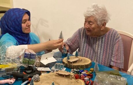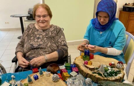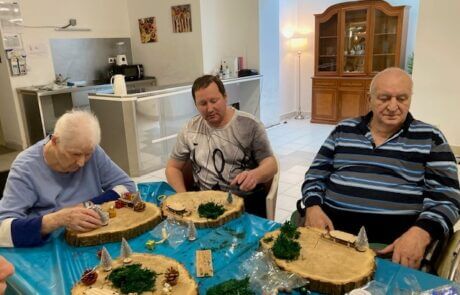 In der SeneCura Residenz Oberdöbling fand eine stimmungsvoller Kreativstunde statt, bei der die Bewohner:innen wunderschöne Weihnachtsdekorationen gestalteten. Auf rustikalen Holzscheiben kreierten die Seniorinnen und Senioren individuelle Winterlandschaften. Geschmückt wurde das Holz mit kleinen Tannenbäumen, Geschenken, Kugeln und Schlitten. Mit viel Liebe zum Detail wurden einzigartige Kunstwerke gestaltet, die bald die Räume der Residenz schmücken.
