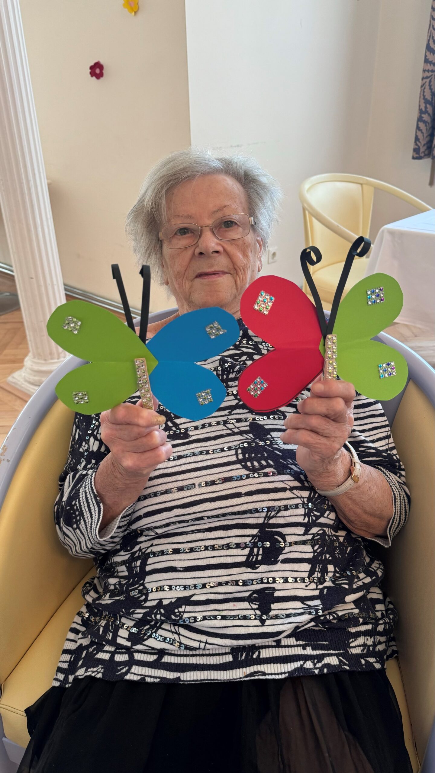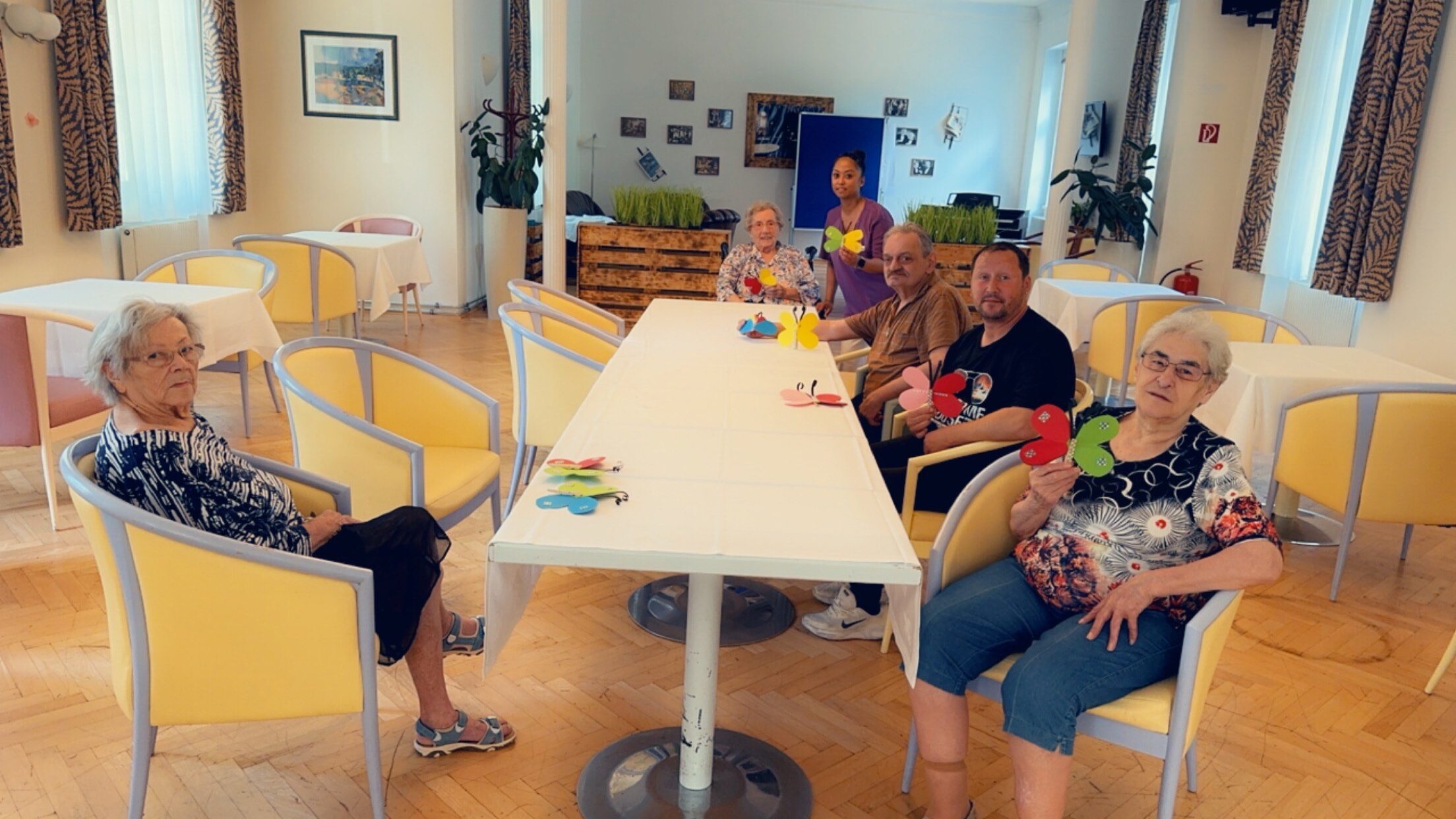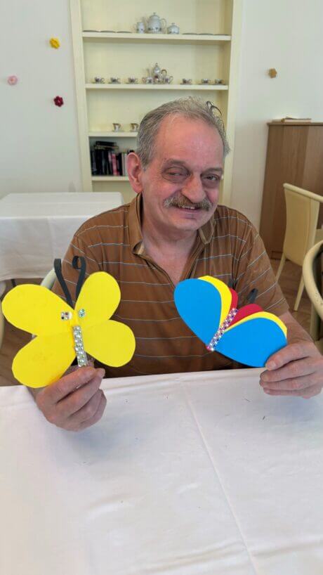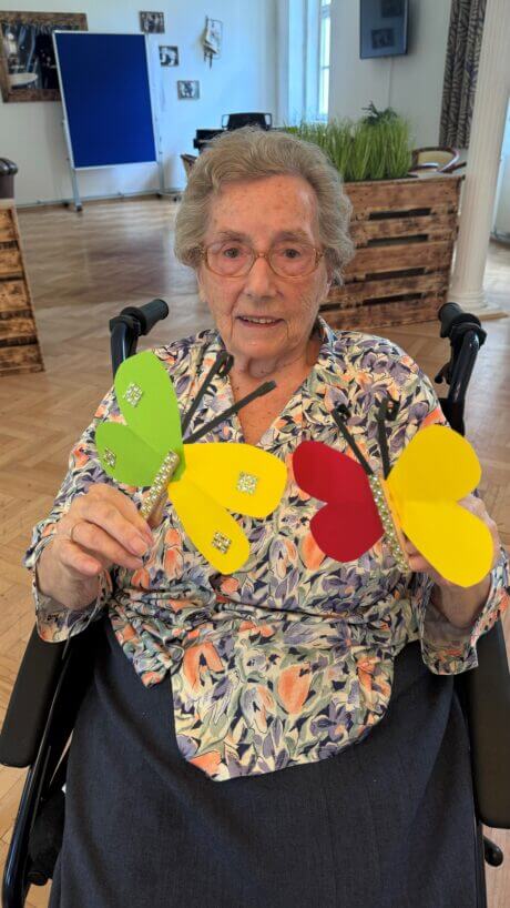 In der SeneCura Residenz Oberdöbling wurde letztens in der Kreativstunde fleißig gebastelt. Die Bewohner:inen versammelten sich, um gemeinsam Glitzer-Schmetterlinge aus buntem Papier zu kreieren. Die Bastelaktion sorgte für kreative, entspannende Stunden und tolle Gespräche. Die finalen Schmetterlinge erweiterten das Sortiment der Sommerdekoration und schmücken ab sofort die Wände der Residenz.