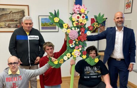 Die Vorfreude war groß, als das SeneCura Sozialzentrum Frauenkirchen zum alljährlichen Frühlingsfest einlud. Die Veranstaltung, die als erstes großes öffentliches Ereignis des Jahres zählt, stand ganz im Zeichen des gemeinsamen Feierns und des künstlerischen Ausdrucks. Schon Tage vor dem Event wurden die Räumlichkeiten liebevoll hergerichtet, Werkstücke der Klientinnen und Klienten für den Verkauf vorbereitet und köstliche Mehlspeisen von den Angehörigen gebacken. „Jedes Jahr wieder ist es eine Freude, zu sehen, wie unsere Gemeinschaft zusammenkommt, um diesen Tag zu etwas ganz Besonderem zu machen“, erzählt Lejla Merdzanovic, eine Klientin des Hauses. Tatsächlich stand der ganze Frühling im SeneCura Sozialzentrum Frauenkirchen im Zeichen der Kunst. Zuvor hatten die Kreativgruppe des Behindertenbereichs ein Kunstwerk als Logo für das im Burgenland bekannte Frühlingsevent „Der Lenz ist da“ erschaffen.