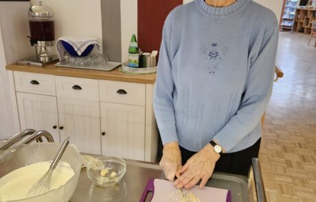Im SeneCura Pflegezentrum St. Veit an der Glan entschieden sich die Bewohner:innen dazu mit der Animation köstliche Langos mit einer aromatischen Knoblauchsauce für die gesamte Station zuzubereiten. Der leckere Duft der Langos breitete sich schnell im Pflegezentrum aus und die Vorfreude stieg immer mehr. Bei der Verkostung wurden die Bewohner:innen sofort in Erinnerungen an ehemalige Besuche in Vergnügungsparks versetzt und genossen die Langos mit Knoblauchsauce in vollen Zügen.