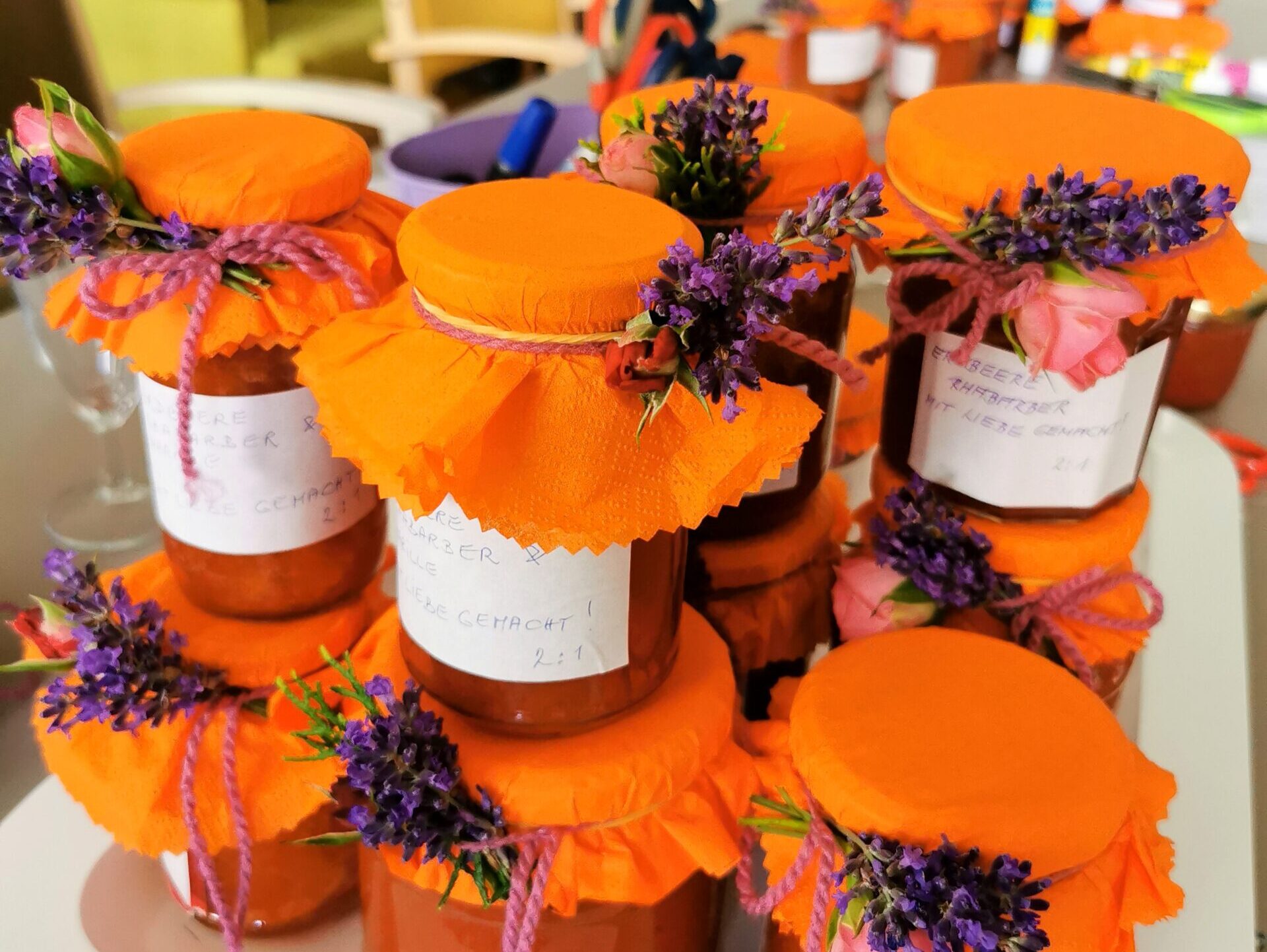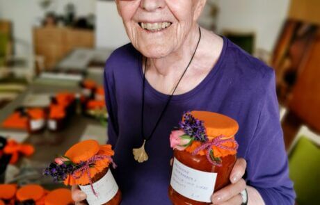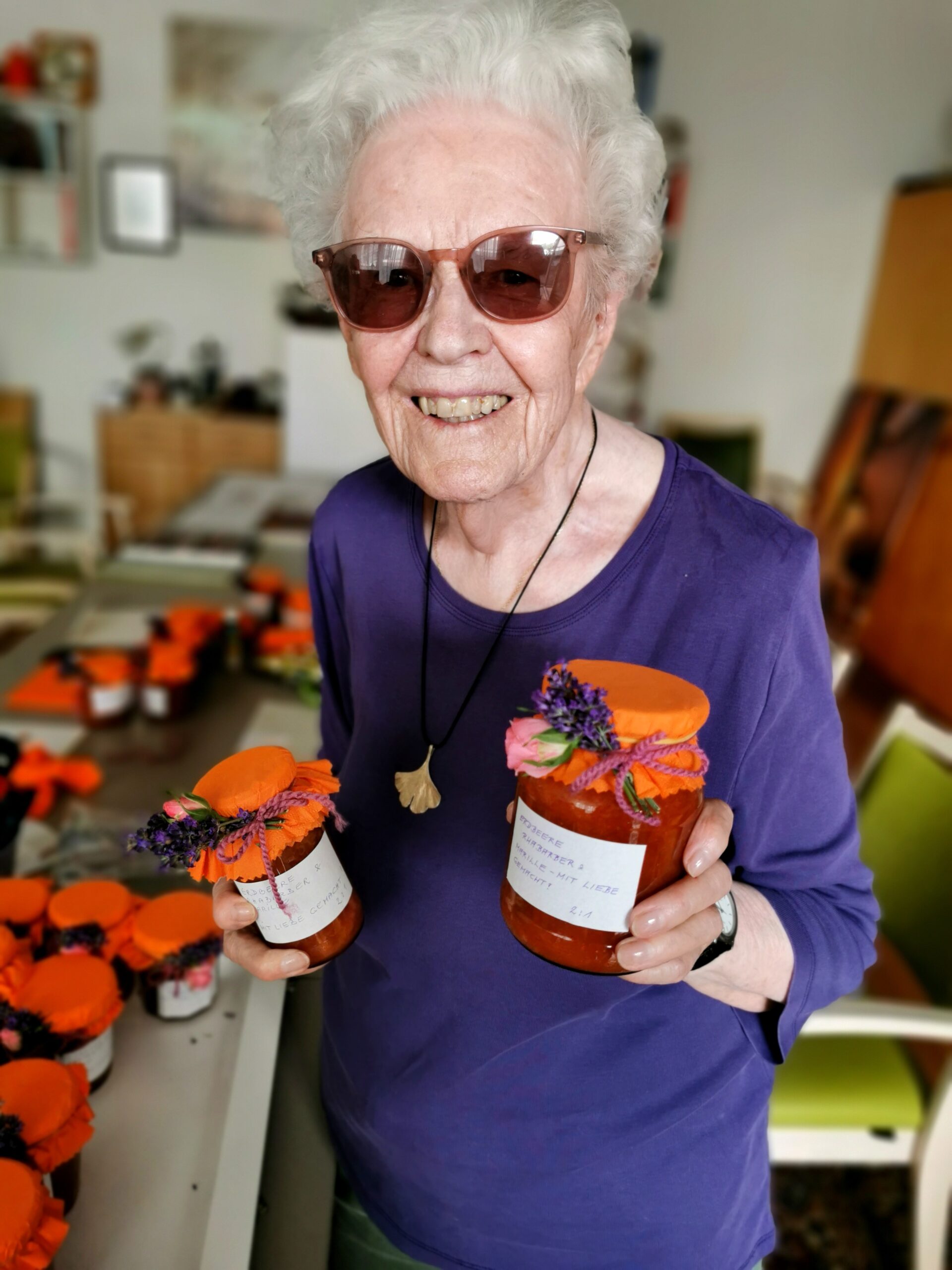 In der Küchenzeile des SeneCura BePartments Graz-Lend wurde wieder einmal fleißig geschnippelt und gekocht. Die Erdbeeren sowie der Rhabarber kamen zur Verarbeitung auf den Tisch. Da einige Bewohner:innen den Aktivitätenleiter, Siegfried Rumpold, schon belagerten, wo den für heuer die Erdbeermarmelade bliebe, fanden sich schnell einige fleißige Damen zusammen, die diesen Wunsch auch umzusetzten. Als die köstliche Marmelade fertig war durfte zu guter Letzt natürlich eine liebevolle Verzierung aus schönen Blümchen nicht fehlen und die erste Kundin, Anna Croce, strahlte über das ganze Gesicht. Über die hervorragende Marmelade freuen sich die Bewohner:innen des Hauses besonders und lassen sich nun jeden Morgen ein leckeres Erdbeermarmeladenbrot schmecken.