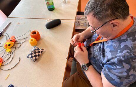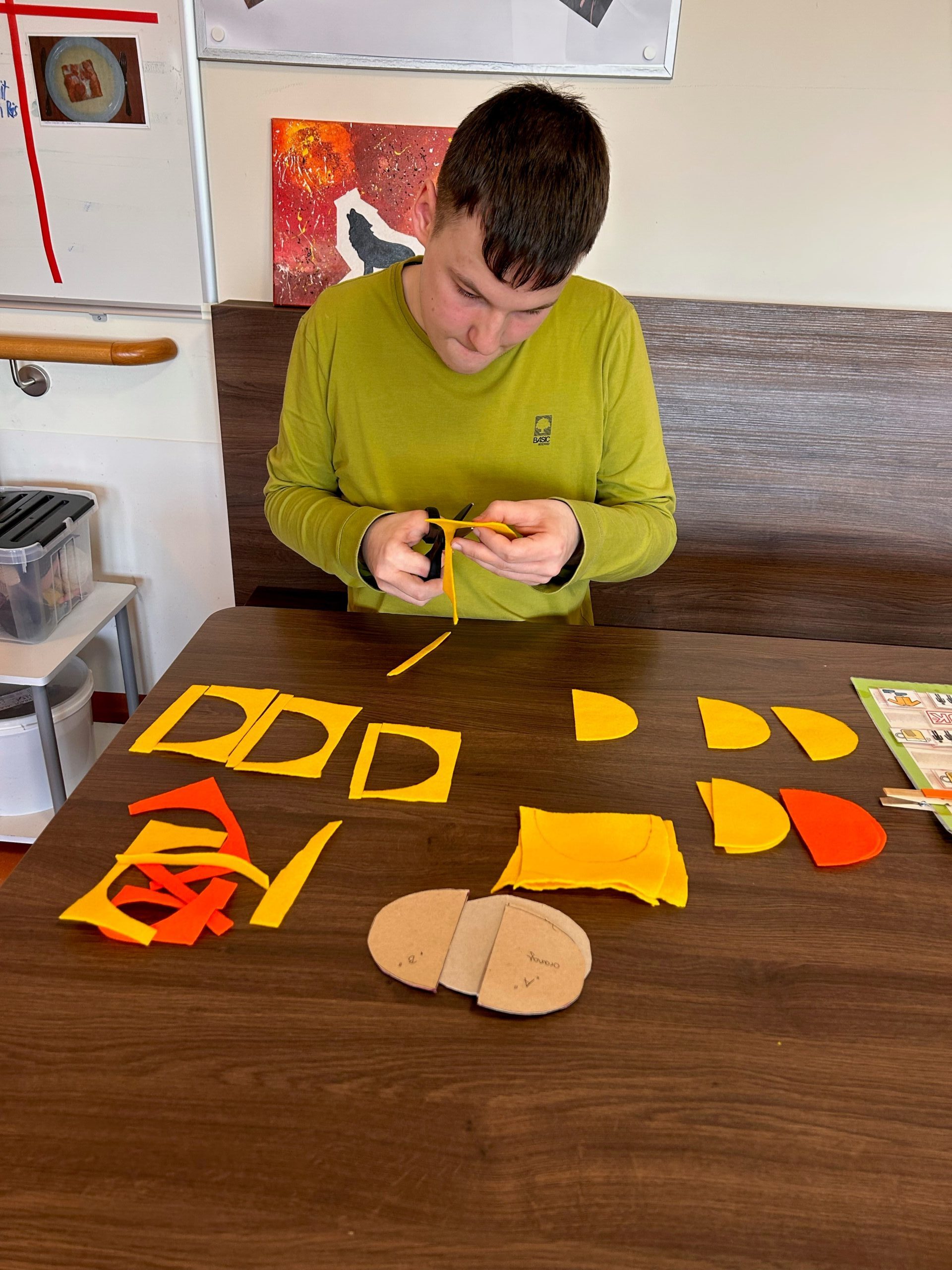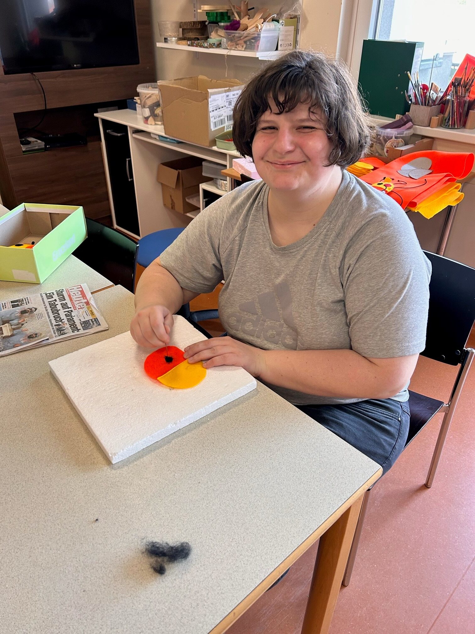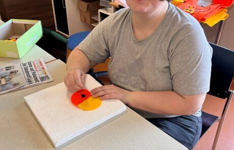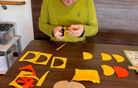 Schon öfter gab es einen Auftrag vom Verein MOKI (Mobile Kinderkrankenpflege), den die Tagesgruppe des SeneCura Sozialzentrums Frauenkirchen kreativ umsetzen konnte. So haben sich alle gefreut, als der Verein erneut mit einer Bitte an die Kreativgruppe herantrat. Die Idee für ein Maskottchen, das sich dann auch als Spielzeug für die erkrankten Kinder eignet, gibt es schon lange. Eines der betreuten Kinder hat vor Kurzem einen Entwurf angefertigt: eine orange-gelbe, lachende Sonne! Die Kreativgruppe probierte mit großem Tatendrang mehrere Techniken aus, die sich für die kreative Umsetzung des Maskottchens eigneten. Die Klientinnen und Klienten waren in die Entscheidungen eingebunden und auch beim Abstimmungsgespräch mit MOKI dabei. Schließlich wurde eine Kombination aus verschiedenen Näharbeiten gewählt. Die Klientinnen und Klienten sind mit großem Eifer bei der Sache. Diese Auftragsarbeit wird für den Verein MOKI nicht verrechnet. Die Klientinnen und Klienten spenden gerne ihre Arbeit an die Kinder, denen sie mit ihren genähten Sonnen garantiert ein Lächeln ins Gesicht zaubern.