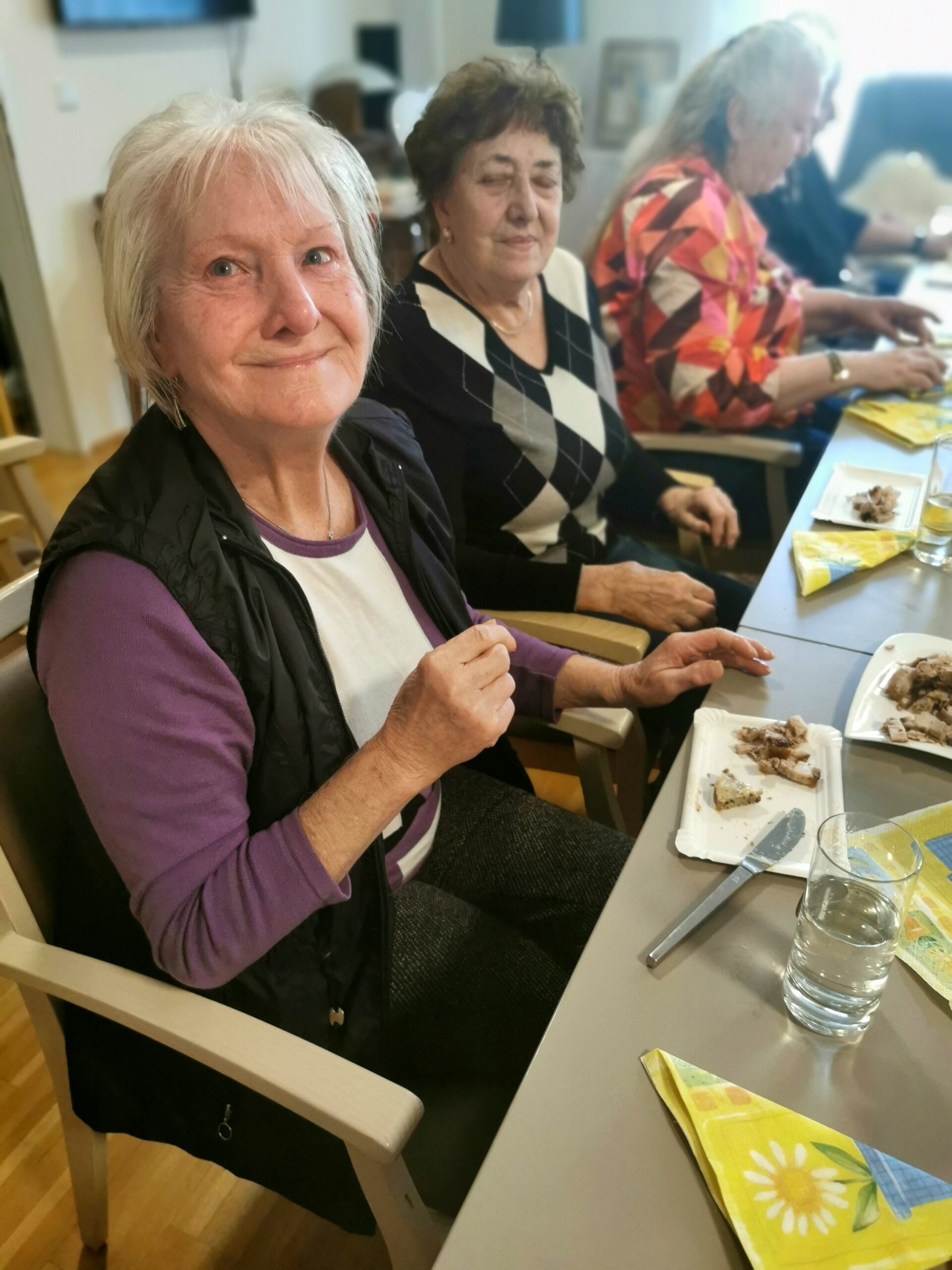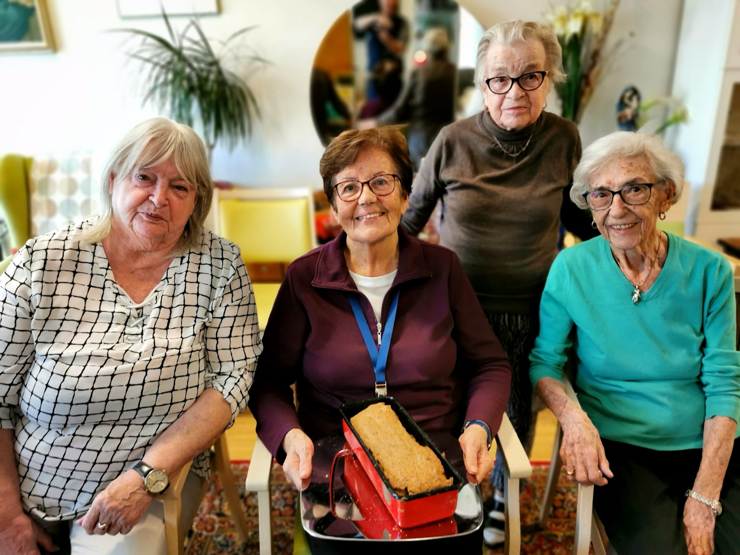 Bewohnerinnen Koren Karin, Ficzko Hedi, Stock Christa und dahinter Rexeis Martina genießen die gemeinsame Zeit.