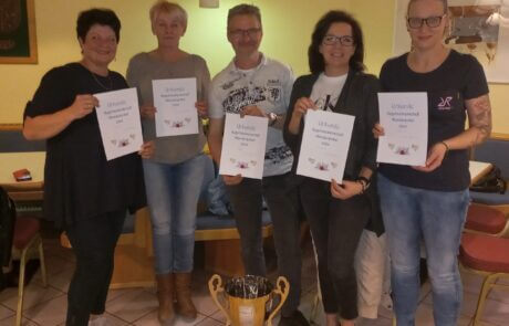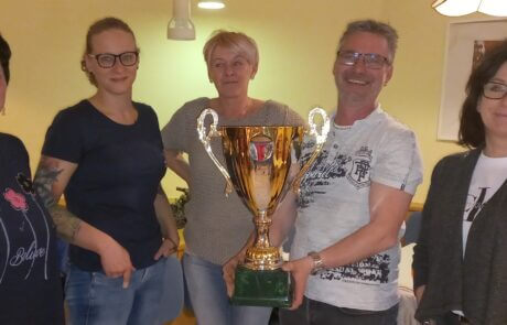 Das erste Mitarbeiter:innen-Kegeltunier des SeneCura Sozialzentrums Kammern – Haus Viola war ein voller Erfolg. Drei Mannschaften ritterten um den begehrten Wanderpokal. Mit viel Ehrgeiz und Spaß wurde der Wettbewerb nach einem guten Essen im Gasthaus Stegmüller durchgeführt. Die Mannschaft „Die Letzten“ machten dem Sprichwort, die Letzten werden die Ersten sein alle Ehre und nach der spannenden Siegerehrung klang der Abend noch lustig aus.