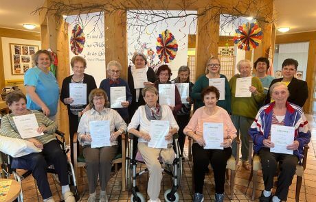 Im SeneCura Sozialzentrum Feldbach wurden die ersten 25 Einheiten des Projekts „Mobilität fördern“ abgeschlossen. Das Projekt der Styria Vitalis, welches durch die ausgebildeten Mitarbeiterinnen Sabine Puntigam und Brigitta Nemeth durchgeführt wird, soll die Mobilität der Bewohner:innen mittels Bewegungseinheiten fördern. Dies erhöht die Selbstständigkeit sowie das Wohlbefinden, zudem aktiviert es und heitert die Bewohner:innen auf. Nach den ersten 25 Einheiten erhielten nun alle Teilnehmer:innen eine Urkunde.