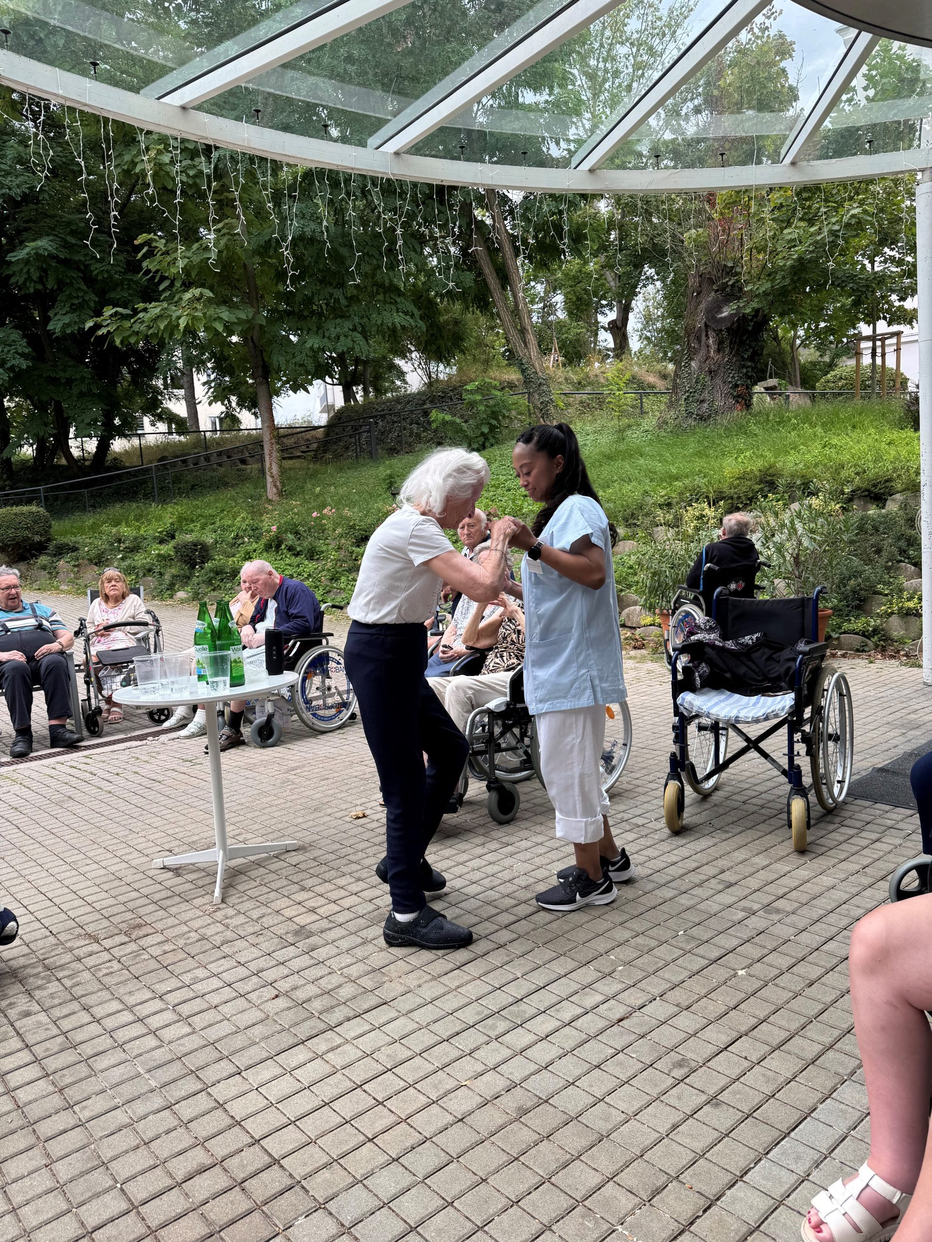 Bei angenehmen Temperaturen fand im Garten der SeneCura Residenz Oberdöbling eine besondere Musikstunde statt. Mithilfe einer Musikbox, die in der Mitte stand, konnten der Reihe nach die Musikwünsche der Bewohner:innen erfüllt werden. Alle genossen die fröhlichen Klänge, sangen mit und tanzten, was das Zeug hält. Es war ein lustiger Nachmittag voller schöner Momente.