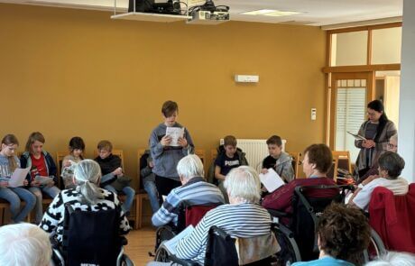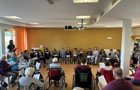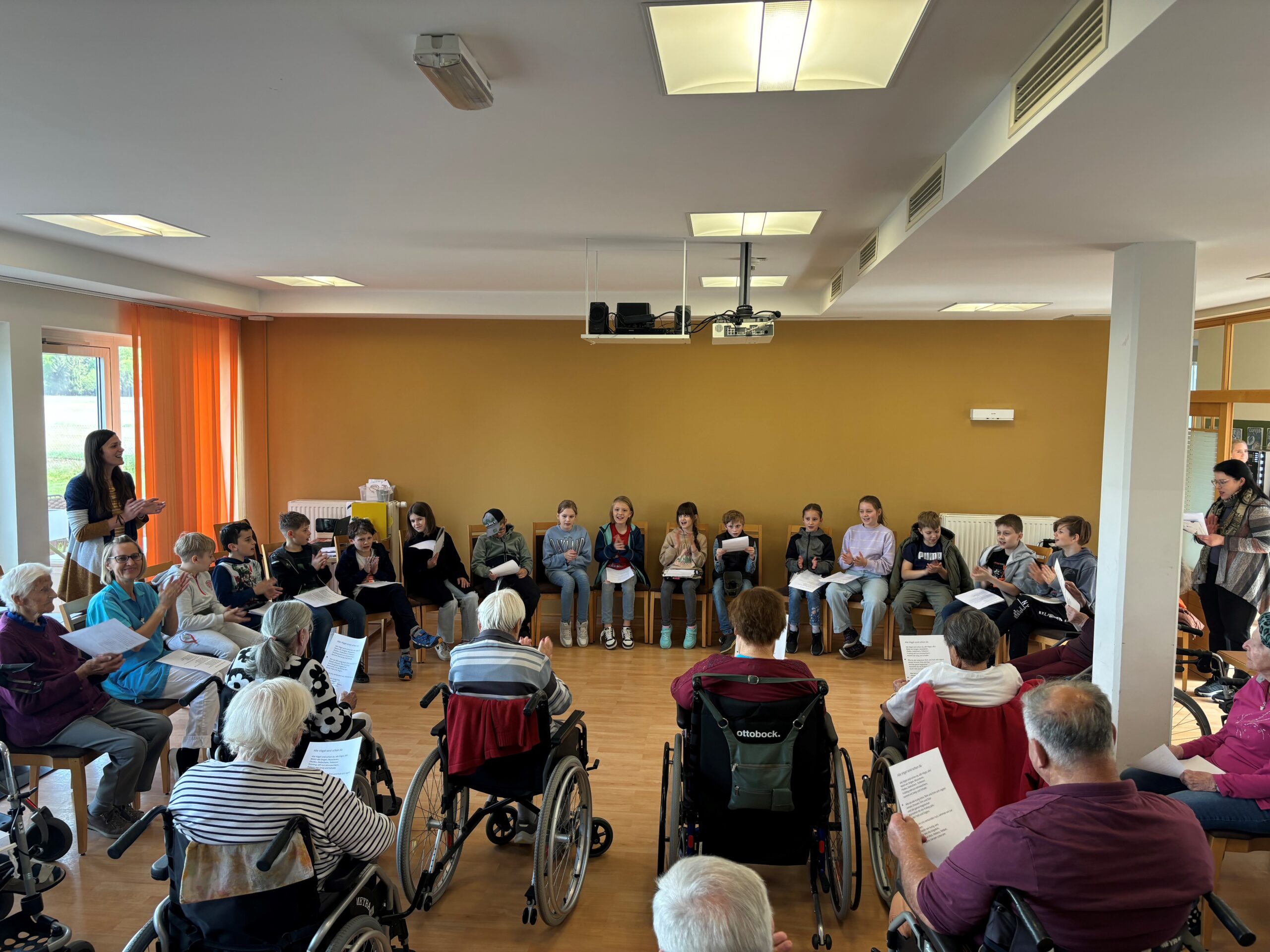 Die Bewohner:innen des SeneCura Sozialzentrums St. Veit in der Südsteiermark erhielten letztens Besuch der örtlichen 4. Klasse Volksschule St. Veit in der Südsteiermark. Gemeinsam trafen sich die Schüler:innen sowie die Bewohner:innen zur gemeinsamen Musikstunde. In bester Gesellschaft sangen und schunkelten die Seniorinnen und Senioren mit den Kindern zur stimmungsvollen Musik und genossen das Beisammensein. Auf den nächsten Besuch der Volksschule freuen sich die Bewohner:innen des Hauses bereits sehr.