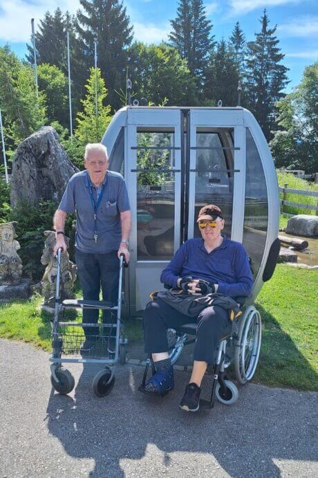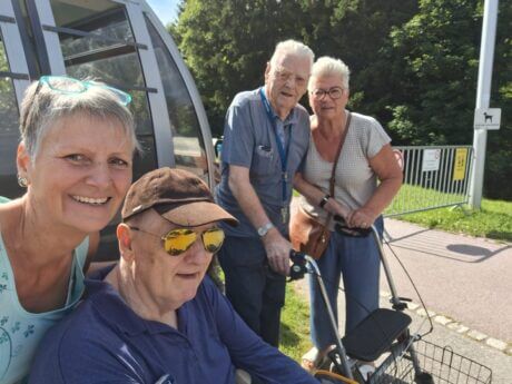Vor kurzem machten sich die Bewohner Emil Wassle und Franz Josef Malin auf den Weg zu einem schönen Ausflug, den das Team als „Herzenswunsch“ gerne organisierte. Begleitet von Mitarbeiterin Ruth Meya-Wachter und der Angehörigen Dagmar Osti genossen sie einen Tag voller Freude und herzlicher Erlebnisse. Emil Wassle, strahlend vor Glück, meinte: „Dieser Tag auf dem Muttersberg hat mir sehr viel bedeutet und Freude bereitet. Ich kann nicht in Worte fassen, wie schön dieser Tag für mich war.“