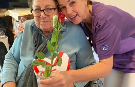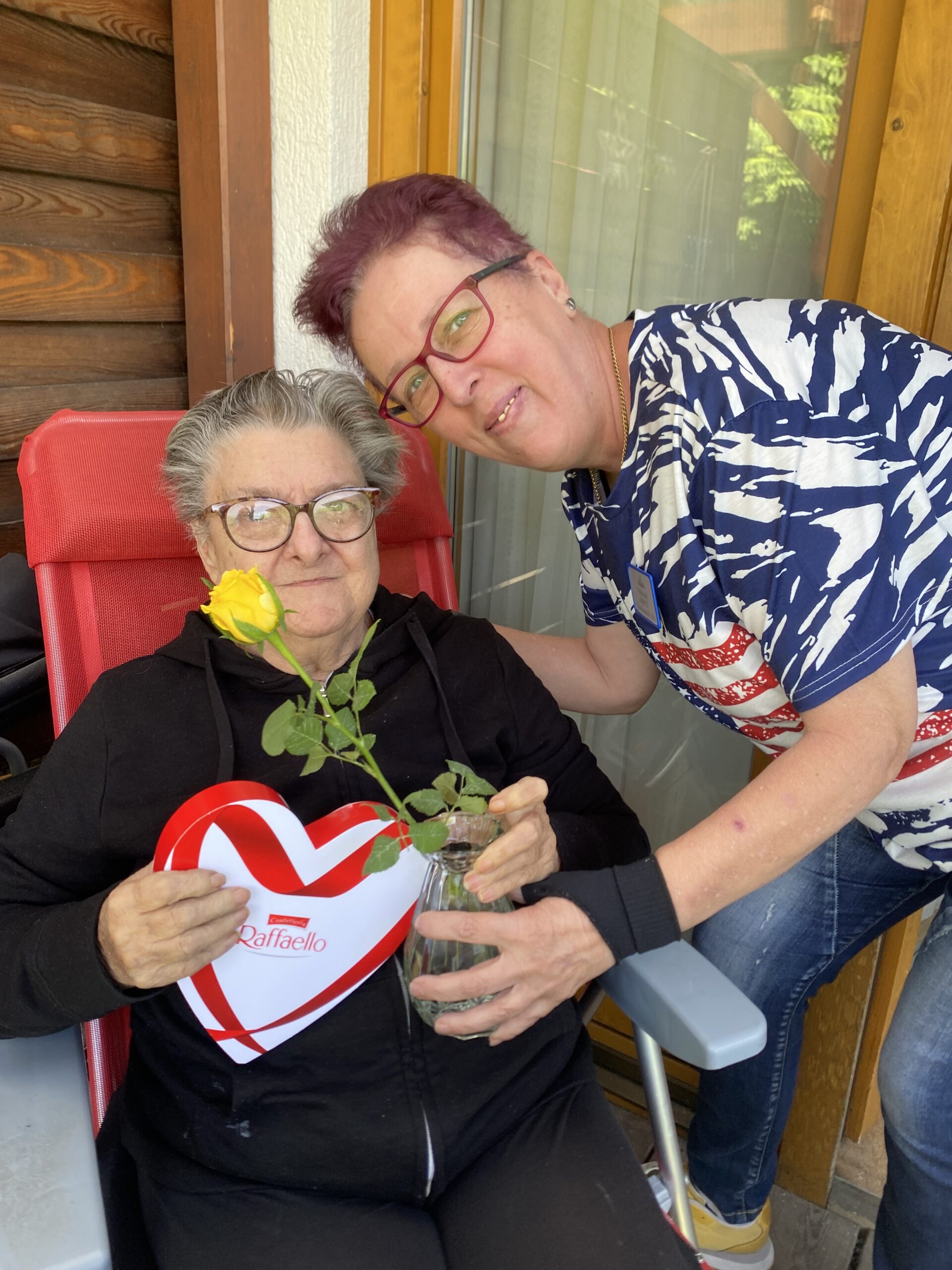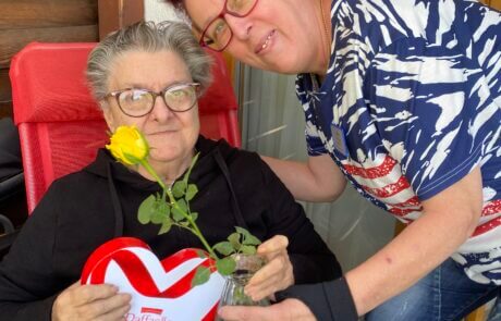 Die Bewohnerin freut sich sehr über das Muttertagsgeschenk.