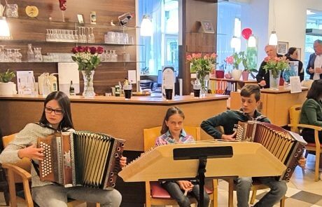 Zur diesjährigen Muttertagsfeier im SeneCura Sozialzentrum Kammern stellte sich auch heuer wieder die Gemeinde Kammern mit Rosen für die Mütter ein. Umrahmt wurde die Feierstunde von der Altsteirermusi Kogler und der Familienmusik Steinegger. Die Stimmung war perfekt und sehr viele Angehörige kamen, um mit ihren Lieben mitzufeiern.