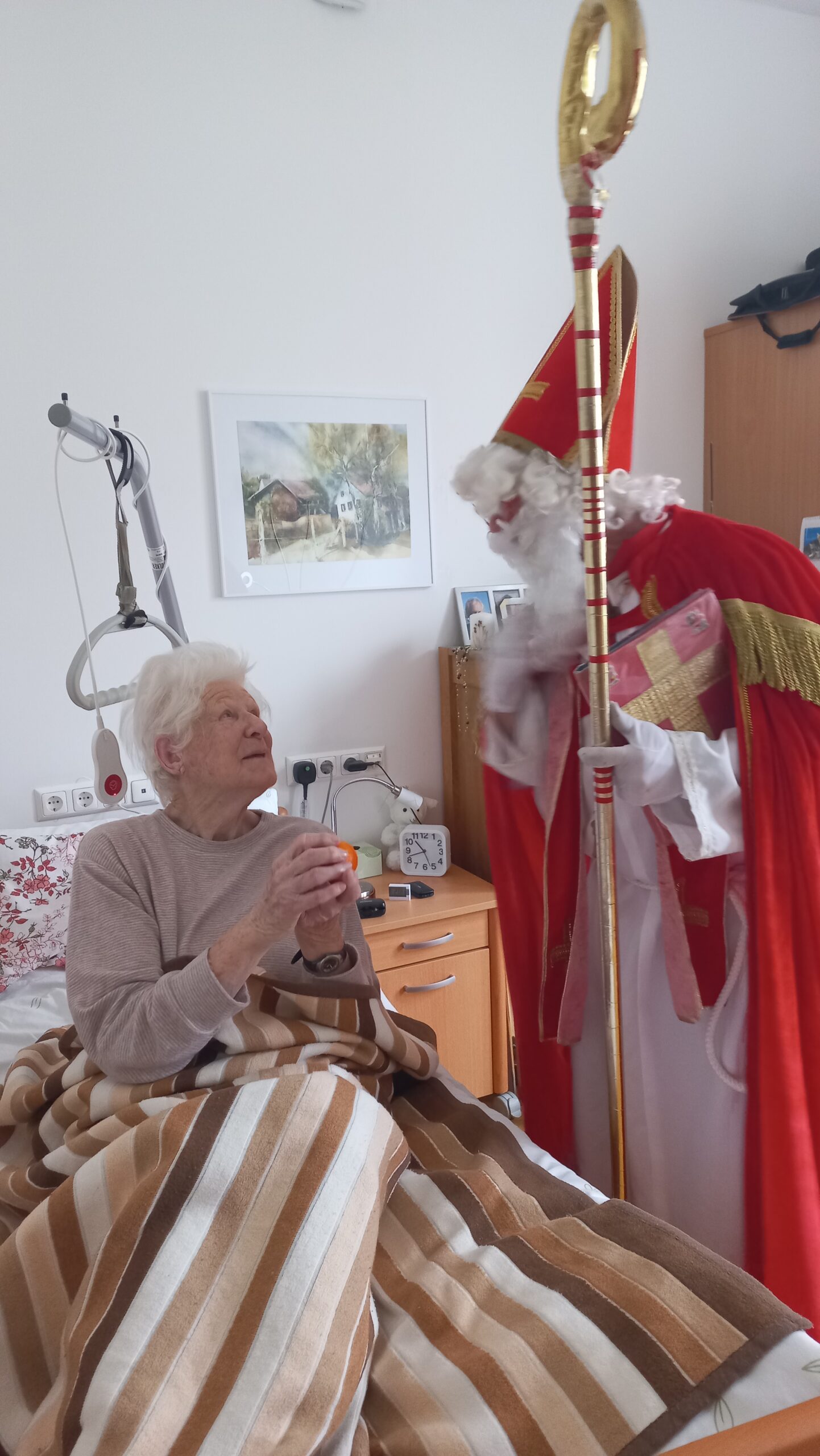 Auch ins SeneCura Sozialzentrum Stainz ist der Nikolaus gekommen und diesmal sogar ohne den Krampus, denn es waren alle Bewohner:innen des Hauses brav. Mit freundlichen, aber auch ermahnenden Worten begrüßte der Nikolaus die versammelte Runde. Jede:r Bewohner:in wurde mit sehr persönlichen Worten vom Nikolaus beehrt – das schlaue Buch durfte nicht fehlen. Ob in der versammelter Runde, im Wohnbereich oder auch im Zimmer verteilte der Nikolaus seine Gaben, wie Mandarinen, Schokolade und Lebkuchen und las von seinem schlauen Buch vor.