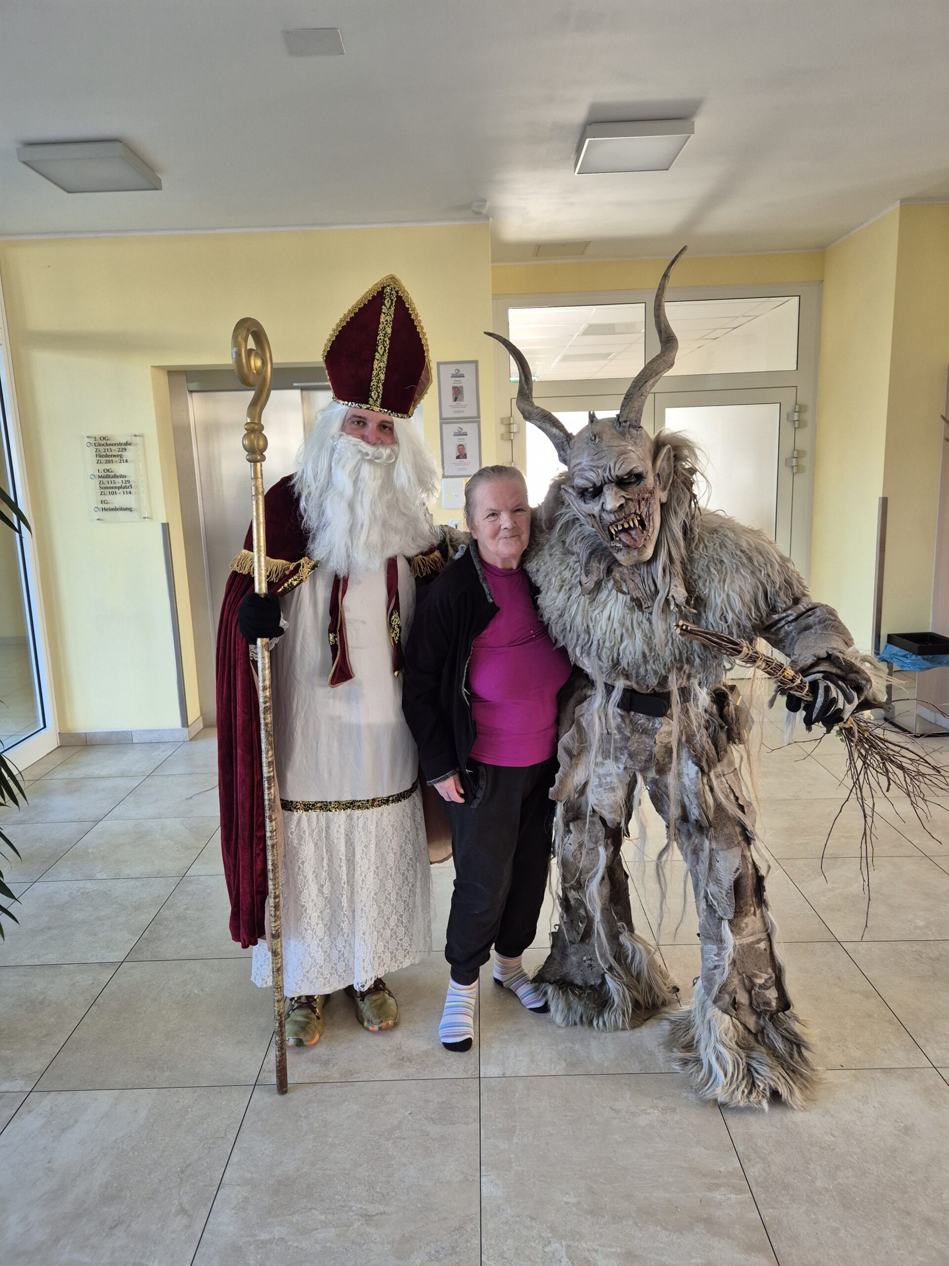 Die Bewohner:innen des SeneCura Pflegezentrum Lurnfeld erhielten letzte Woche Besuch vom Nikolaus und Krampus. Auch die Perchtengruppe „Lords of Fire Spittal“ kam ins Haus. Der Besuch weckte viele Erinnerungen aus Kindheitstagen und sorgte für gute Laune im Haus. Der Nikolaus teilte kleine Geschenke aus und zauberte so ein Lächeln auf die Gesichter der Bewohner:innen.