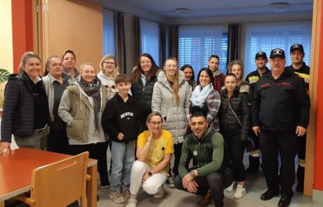 Die Zusammenarbeit aller beteiligten Einsatzorganisationen und unseren Mitarbeiter:innen konnte an diesem Abend geübt werden. Es nahmen 11 Mitarbeiterinnen, 2 Kinder von Mitarbeiterinnen und 5 Bewohner:innen an der Evakuierungsübung teil. Im Anschluss durfte Hausleitung Michaela Ladinig sich bei allen Mitwirkenden, allem voran auch Hauptbrandinspektor Schlick Arnold, der die Übung ausgearbeitet hat, bedanken. „Die Leistung der Freiwilligen ist bewundernswert, dennoch wünschen wir uns, dass es nie zum Ernstfall kommt.“, so Ladinig. Zum Abschluss und zur Stärkung wurden alle auf ein köstliches Gulasch und Bier eingeladen.