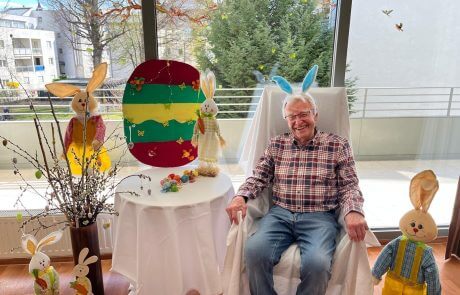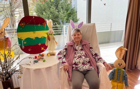 Pflegeassistentin Marcela Szalayova hatte kürzlich eine tolle Idee zu einem österlichen Fotoshooting mit den Bewohnerinnen und Bewohnern im SeneCura Kreuzbergl. Gesagt – getan. Nachdem schnell eine Fotoshooting-Ecke eingerichtet wurde, nahmen die Bewohner:innen Elisabeth Wartberger, Elisabeth Elbischger und Benno Fritz zur großen Freude teil. „Unsere Fotos können sich wirklich sehen lassen.“, ist man sich schnell einig.