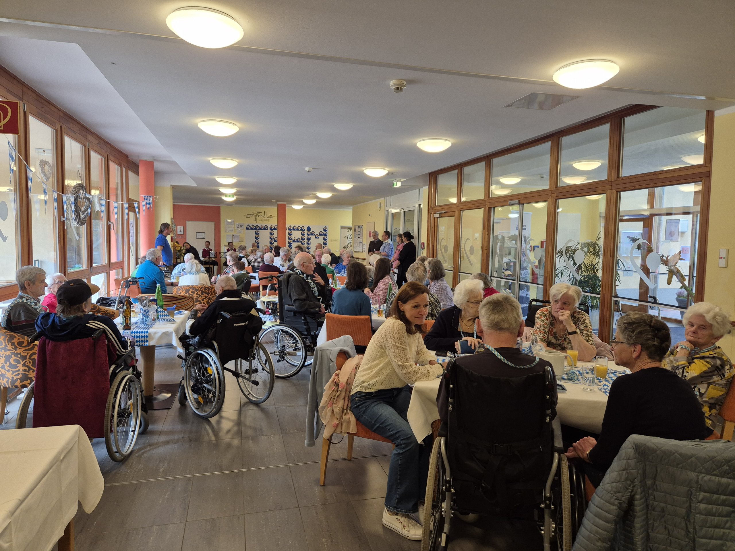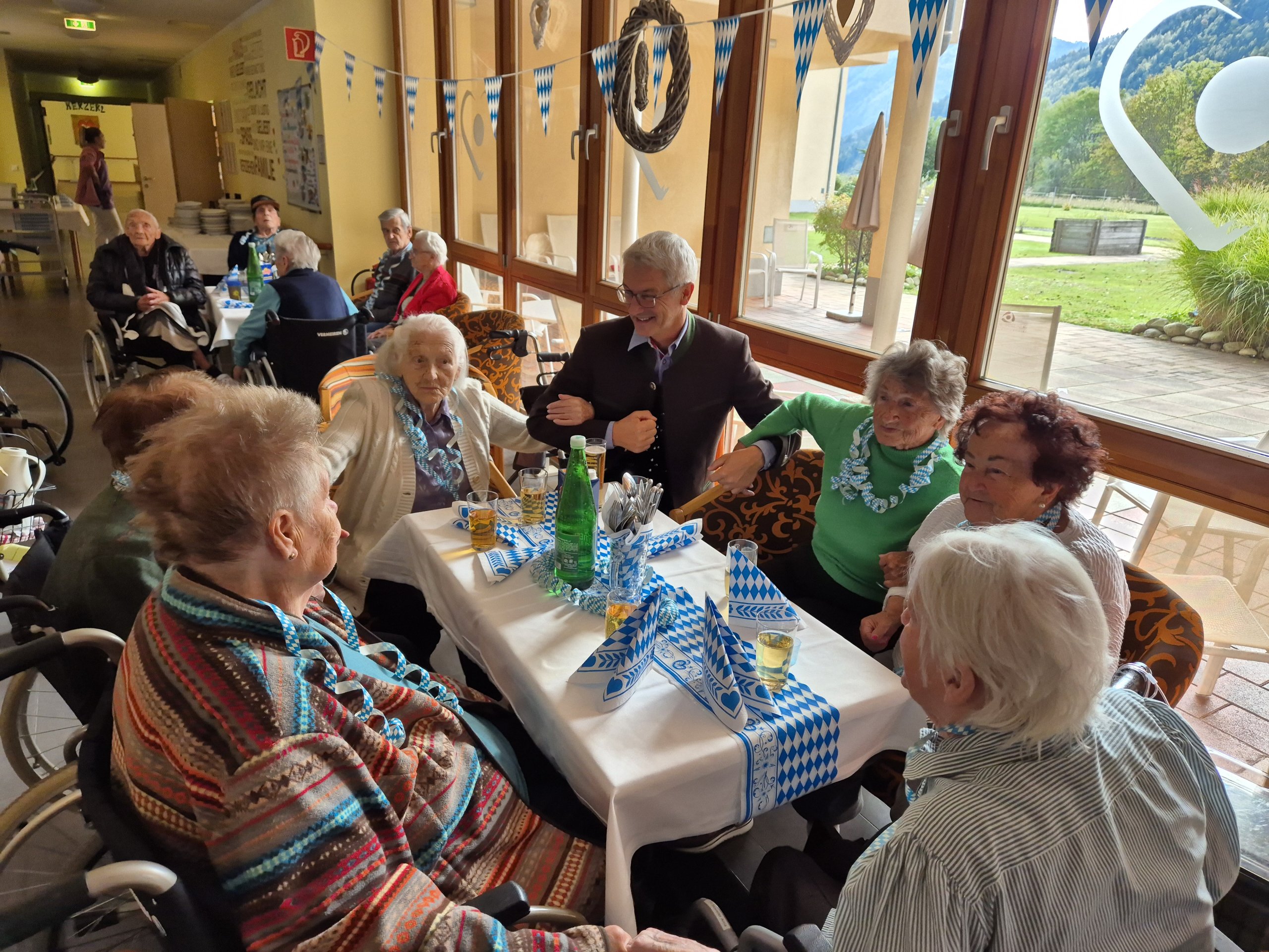 Letztens fand wieder das alljährliche Oktoberfest im SeneCura Sozialzentrum Mühldorf statt. Bei bayrischem Ambiente, Spanferkel mit Kraut und Knödel, Bier und volkstümlicher Musik ging es zünftig im Haus zu. Es wurde getanzt, gesungen und vor allem viel gelacht. Das Highlight war eine kleine Abordnung der Dorfmusik, welche wieder für Stimmung sorgte. Ein Dankeschön gilt der Gruppe, die ehrenamtlich das Sozialzentrum beim Oktoberfest bereichert und für Begeisterung bei den Seniorinnen und Senioren sorgte. „Das war wieder so ein schönes und lustiges Fest!“, so schwärmten die Bewohner:innen noch die ganzen nächsten Tage davon. Auch Hausleitung Roland Risser war begeistert und freute sich, dass viele Angehörige und Gemeinderäte der Einladung folgten.