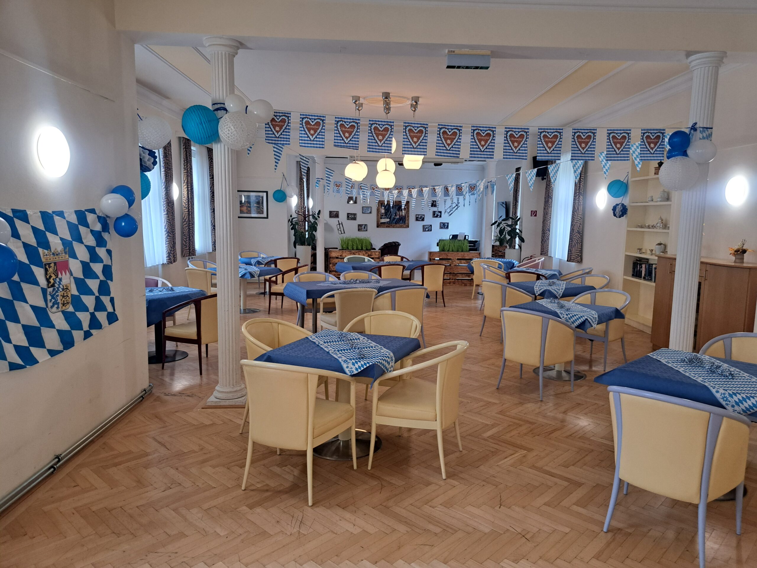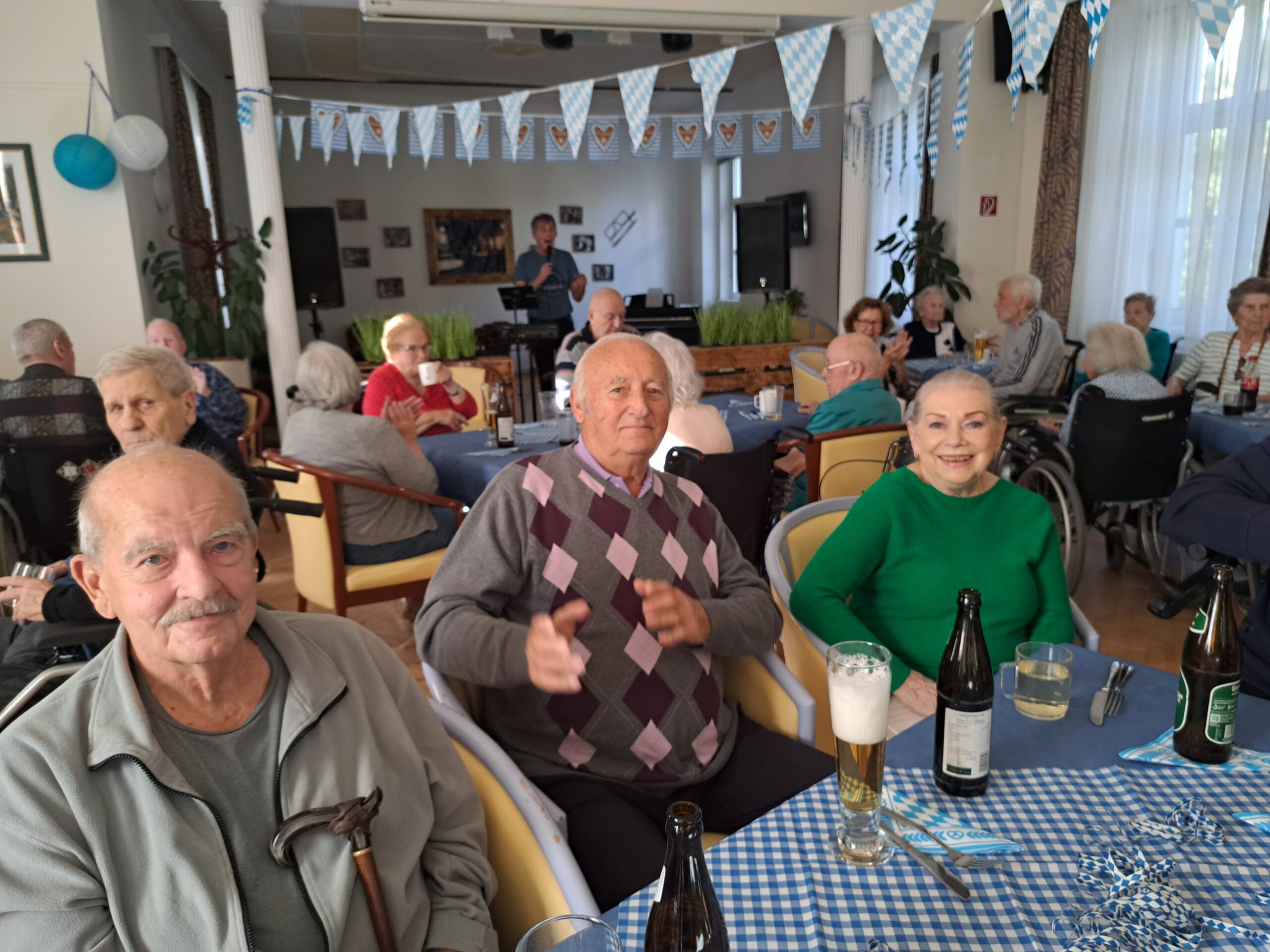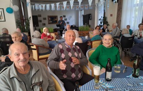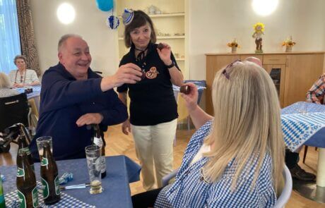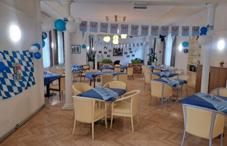 Kürzlich fand in der SeneCura Residenz Oberdöbling das diesjährige Oktoberfest statt. Der Raum wurde vorab entsprechend mit klassischer blau/weiß Deko verziert. Traditionell bayerische Musik sorgte für die musikalische Unterhaltung und animierte zum Mitsingen und Mittanzen. Passend zum Thema wurden alle Bewohner:innen mit Weißwürsten und Bier verwöhnt, über das sich jede:r sehr freute. Es war ein ausgelassenes Fest voller Spaß und Tanz, an das sich die Bewohner:innen noch lange erinnern werden.
