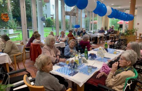 Das SeneCura Sozialzentrum Dornbirn lud die Bewohner:innen auch heuer wieder zum alljährlichen Oktoberfest ein. Im blau/weiß geschmückten Gemeinschaftssaal und bei dem einen oder anderen Gläschen Bier sowie köstlichen Weißwürsten mit Brezen genossen die Anwesenden den stimmungsvollen Nachmittag in vollen Zügen. Die Bewohner:innen lauschten der traditionell bayrischen Musik und tanzten fleißig dazu. Es war wieder ein sehr gelungenes Fest mit schönen Stunden für die Bewohner:innen und einem sehr gemütlichen Beisammensein.