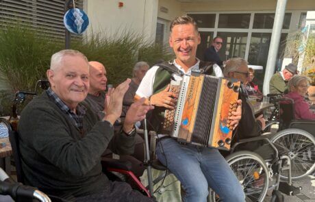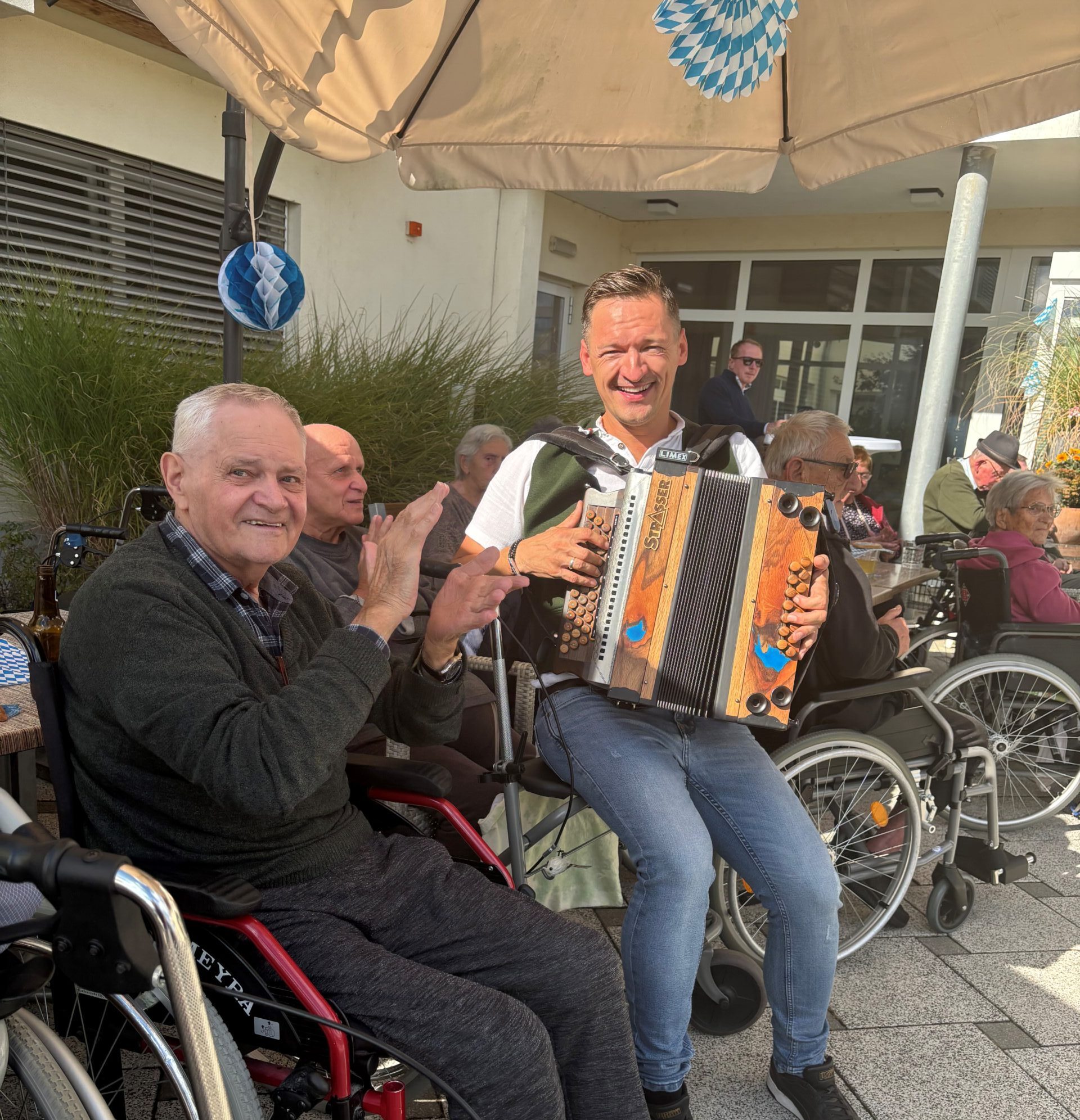 Im hauseigenen Garten des SeneCura Sozialzentrums St. Veit in der Südsteiermark fand letztens ein fulminantes Oktoberfest statt. Begleitet von musikalischen Klängen der Live-Musik ließen es sich die Bewohner:innen bei traditionellen Wiesn-Köstlichkeiten so richtig gut gehen. Der Spaß kam definitiv nicht zu kurz und bei strahlendem Herbst-Sonnenschein tanzten die Seniorinnen und Senioren noch bis in die frühen Abendstunden zur Musik.