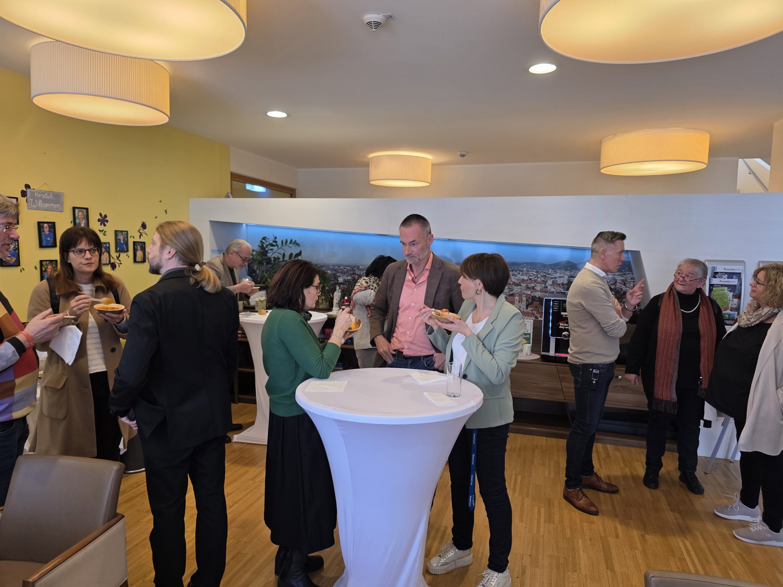 Die Besucher:innen erwarteten spannende Einblicke ins Haus, eine ausführliche Hausführung und interessante Speaker Pitches – für das leibliche Wohl war selbstverständlich auch gesorgt! Etwa 25-30 Besucher:innen waren vor Ort und auch der Landesabgeordnete Herr Günter Wagner als Vertretung des Landeshauptmannes ließ es sich nicht nehmen, die Open House Veranstaltung in den BePartments zu besuchen.