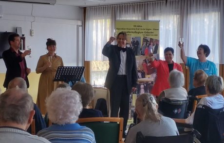 Im SeneCura Sozialzentrum Feldbach fand kürzlich ein musikalischer Operettennachmittag statt. Manfred Grössler und sein Künstlerkollegium begeisterten die Bewohner:innen mit einem schwungvollen Musikprogramm. Die wunderschönen Melodien und beeindruckenden Stimmen der Künstler:innen sorgte für große Freude im Haus. Die alten Lieder, die die Musiker:innen zu ihrem Besten gaben, weckten Erinnerungen an vergangene Zeiten und sorgten für das ein oder andere Schmunzeln bei den Seniorinnen und Senioren. Es war ein besonderer Nachmittag und die Bewohner:innen genossen es, gemeinsam in eine musikalische Welt einzutauchen.