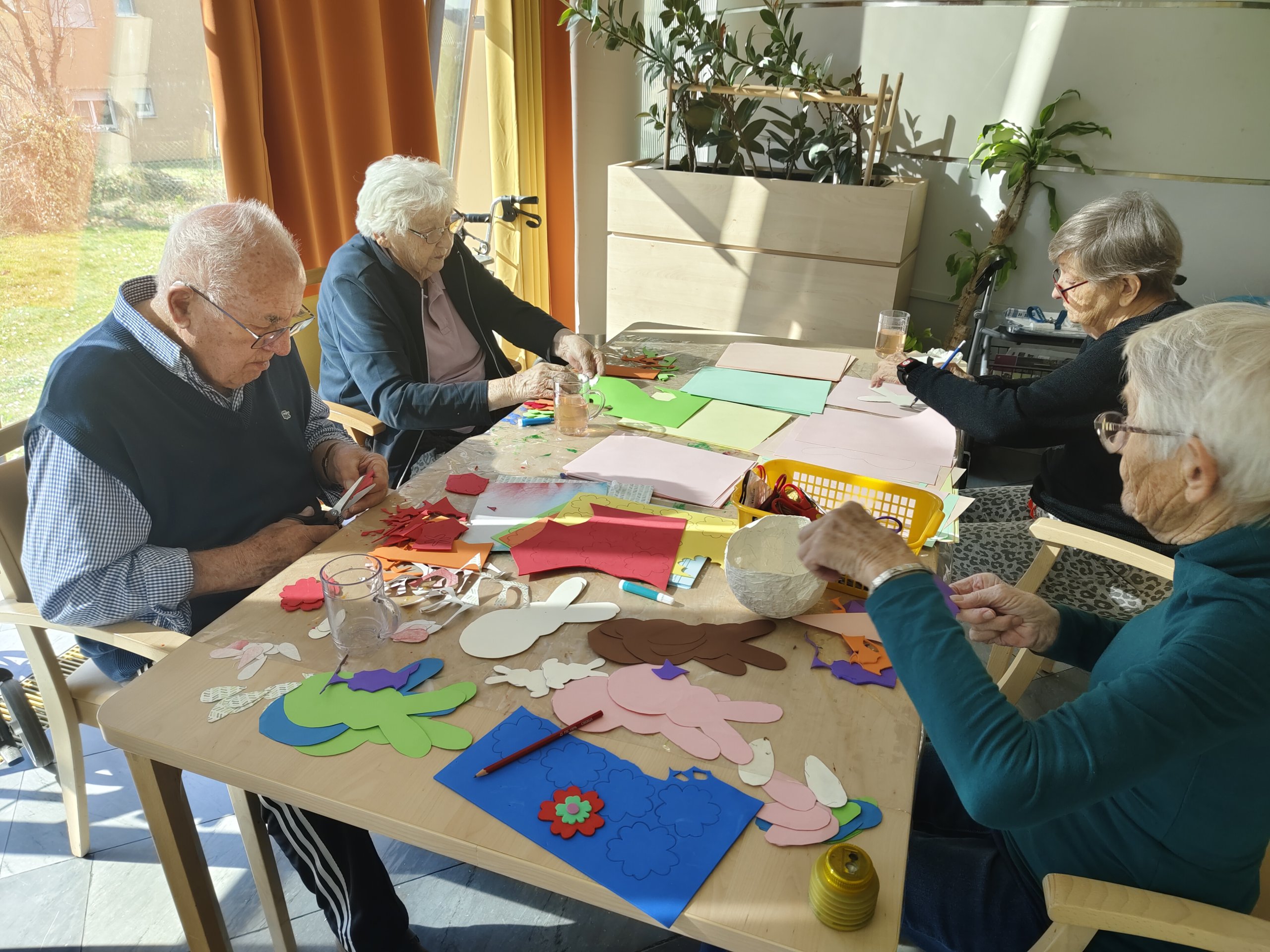 Im SeneCura Sozialzentrum Gratkorn herrschte in den vergangenen Tagen reges Treiben: Mit viel Freude, Leidenschaft und Herzblut bereiteten unsere Bewohnerinnen und Bewohner die Osterzeit vor. Beim Basteln für den Osterbasar entstanden wunderschöne Dekorationen, liebevoll gestaltete Körbchen und frühlingshafte Schmuckstücke – jedes Werk ein kleines Kunststück für das eigene Zuhause. Die Begeisterung und Kreativität der Teilnehmenden waren spürbar und zauberten allen ein Lächeln ins Gesicht. So wird das Osterfest im Haus nicht nur farbenfroh und festlich, sondern auch zu einem besonderen Erlebnis, das Gemeinschaft, Freude und die Vorfreude auf die Feiertage miteinander verbindet.