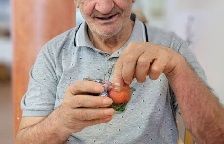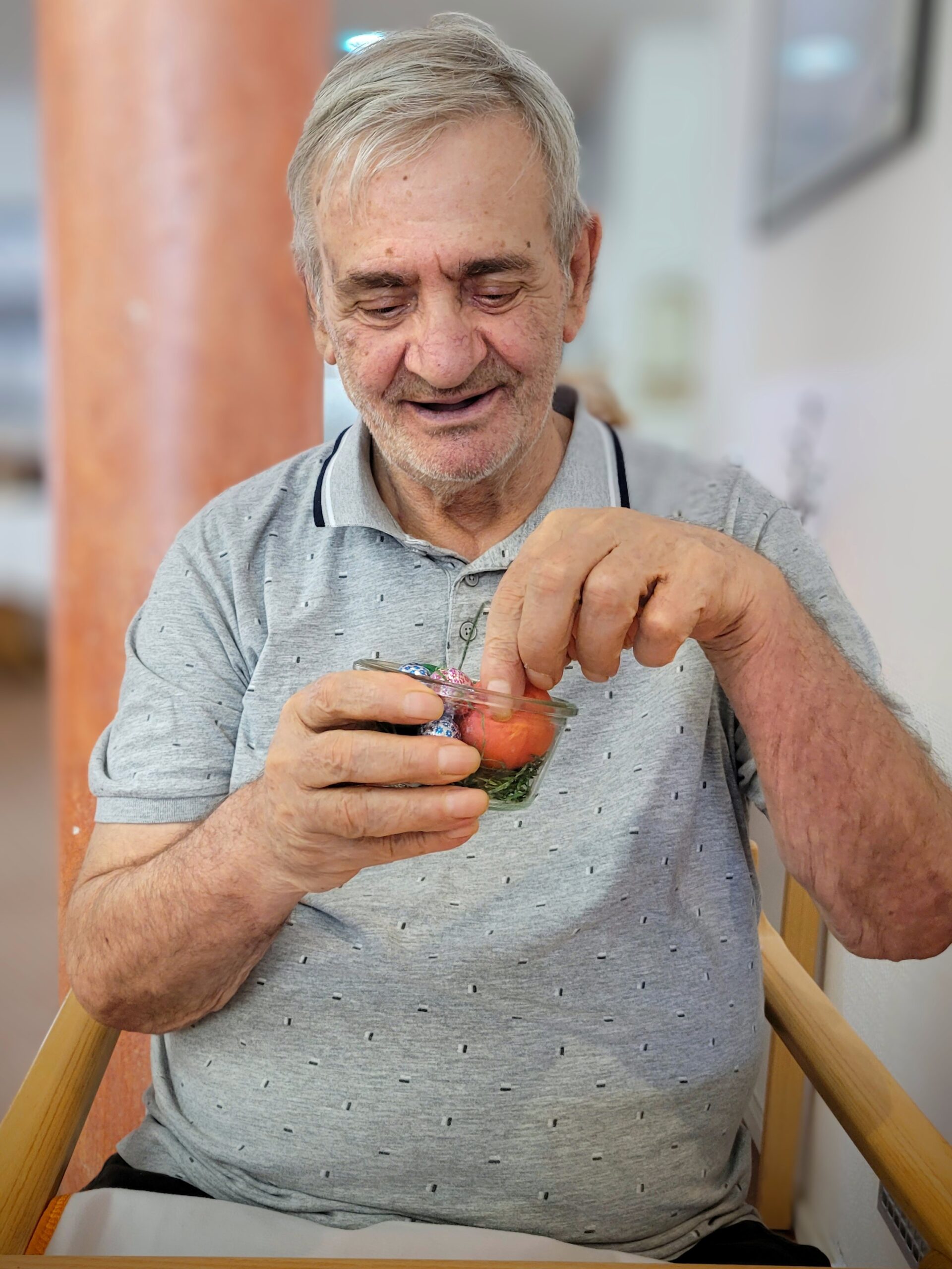 Die Bewohnerin freut sich über ihr kleines Osternestchen.