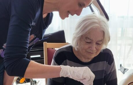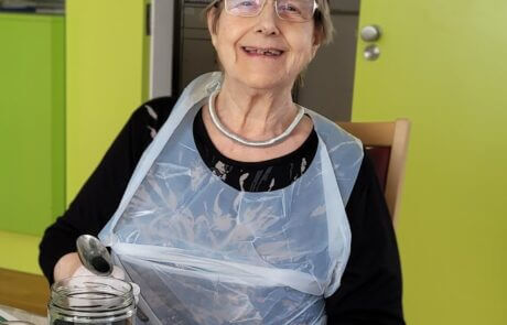 Mit viel Engagement hilft die Bewohnerin fleißig mit.