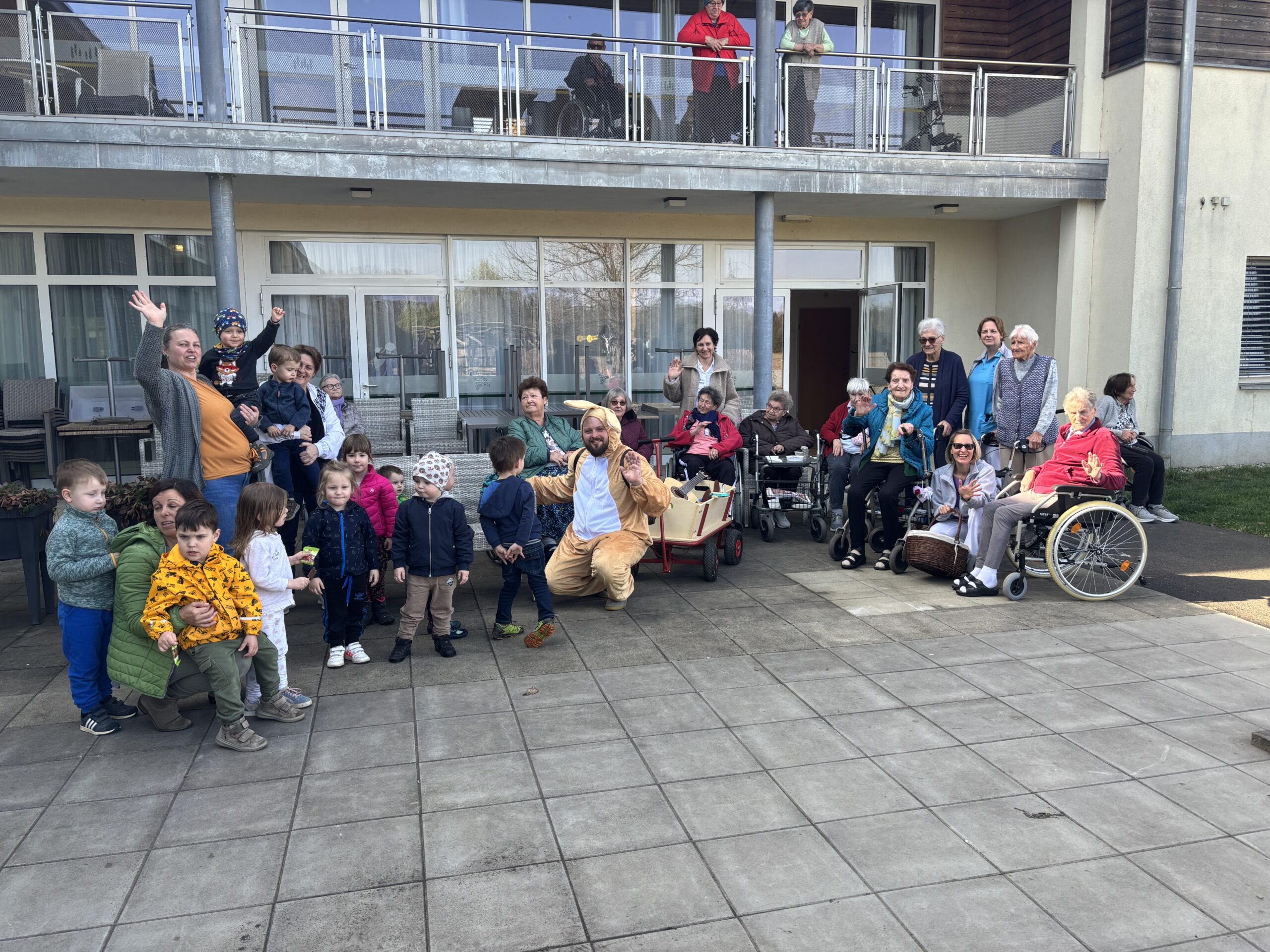 Die Kinder der örtlichen Kinderkrippe besuchten kürzlich das SeneCura Sozialzentrum St. Veit in der Südsteiermark, um das Haus bei der Ostereiersuche auf den Kopf zu stellen. Gemeinsam mit den Bewohner:innen wurden bei strahlendem Sonnenschein Osternester im Garten gesucht. Groß war die Freude, als die Kinder die Nester fanden, in denen allerlei Süßigkeiten versteckt waren. Als besonderes Highlight galt natürlich der Osterhase, der die Kinder bei der Suche tatkräftig unterstützte und hin und wieder einen Hinweis ausplauderte, wo die Ostereier denn versteckt sein könnten. Alles in allem war es eine erfolgreiche Osternestsuche und die Bewohner:innen des Hauses genossen den Besuch der Kinder im Haus.