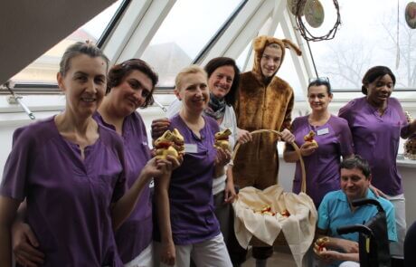 Auch die Mitarbeiter:innen der SeneCura Residenz Grinzing freuten sich über einen Ostergruß, vor allem wenn der Hase persönlich vorbei hoppelt. Ein verkleideter Osterhase hat nämlich das gesamte Team des Hauses mit einem Schokoladenosterhasen überrascht. Über die süße Aufmerksamkeit freuten sich alle sehr und konnten es kaum erwarten, den Schokohasen zu vernaschen.